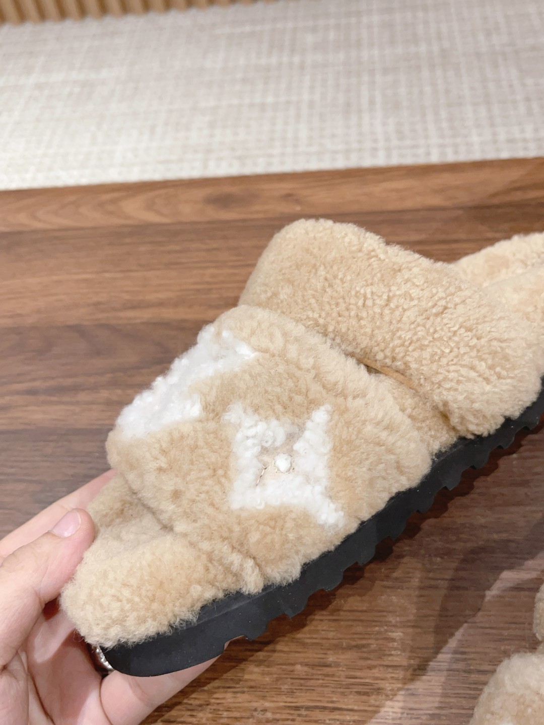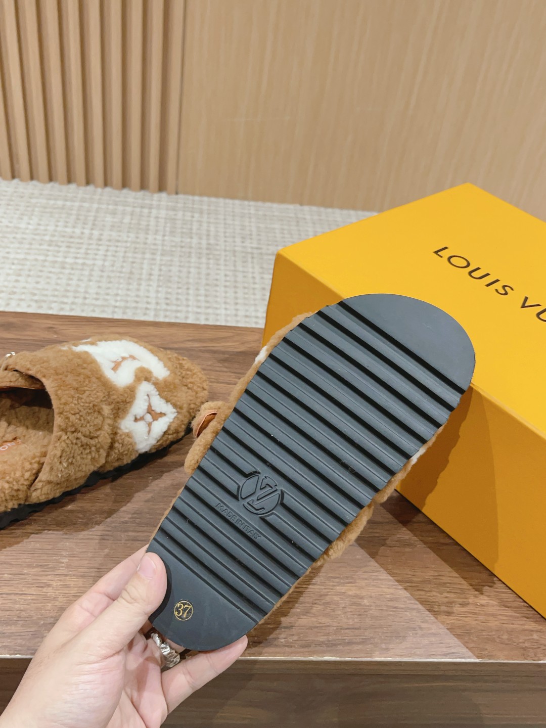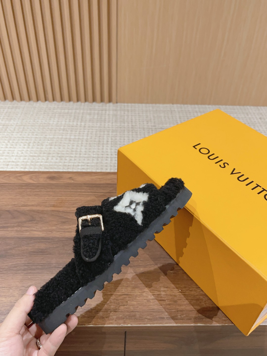 𝐋𝐨𝐮𝐢𝐬 𝐕𝐮𝐢𝐭𝐭𝐨𝐧 𝐏𝐚𝐬𝐞𝐨 𝐂𝐨𝐦𝐟𝐨𝐫𝐭 路易威登平底毛拖采用细腻羊毛为宽幅 LV 字母和 Monogram 花卉,再以羊毛鞋底围裹轻柔暖意,搭配轻盈胎面橡胶外底,室内户外穿着皆宜。米超温暖的感觉,穿上仿佛踩在云朵上♥️整张羊毛一体制作,精致高级!让这双毛拖身价陡增!鞋底是原版开模的防滑橡胶大底,非常好穿不打滑 配送专柜精美包装🛍📦 🔸面料: 皮毛一体羊羔毛 🔸垫脚:进口羊羔毛 🔸鞋底:原版开模橡胶发泡大底 🔸底厚:4CM 🔸Size: 35-39(40定做不退换)