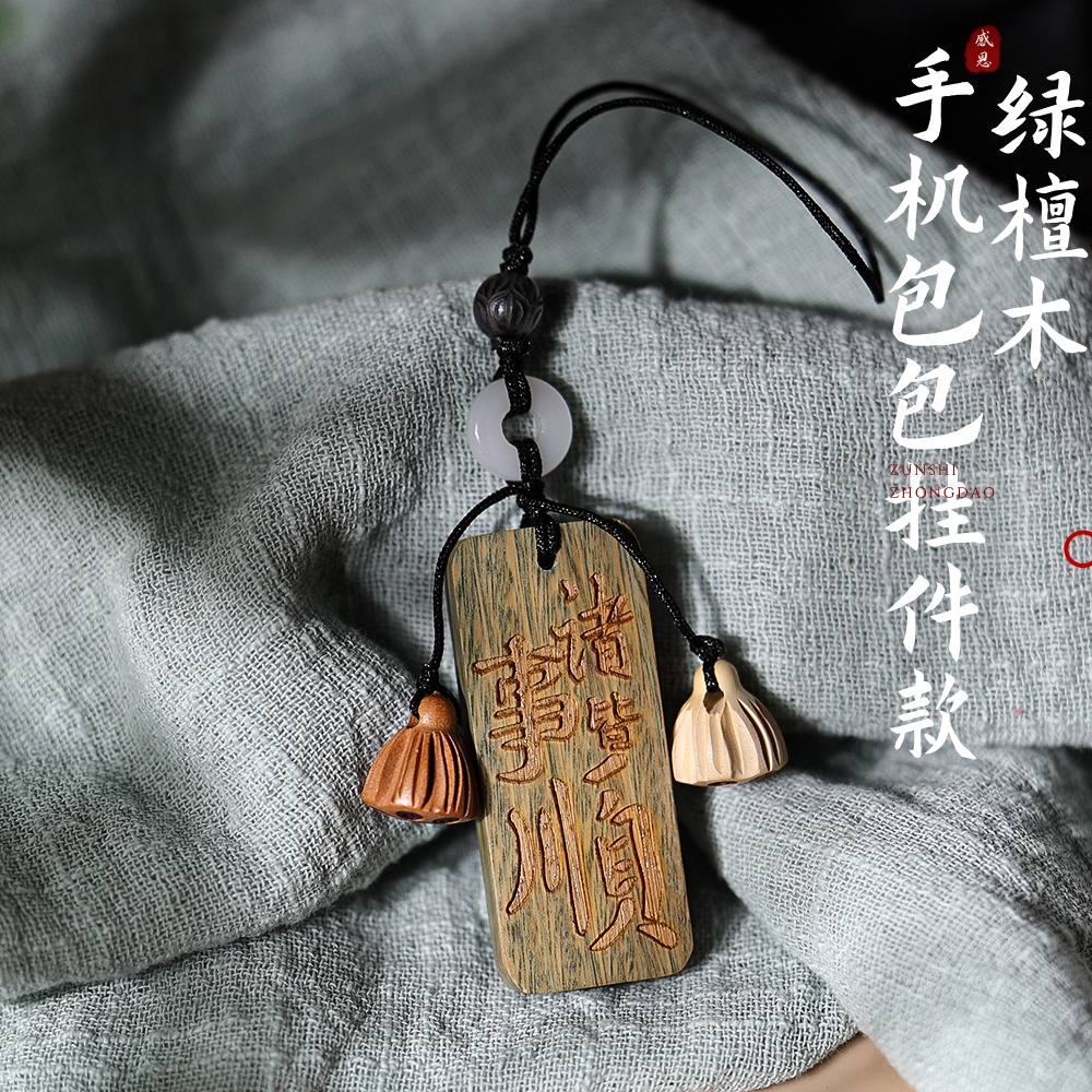 【普陀山】天然绿檀木牌 手机挂件钥匙扣
