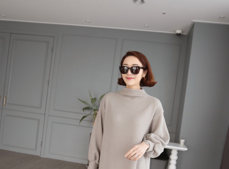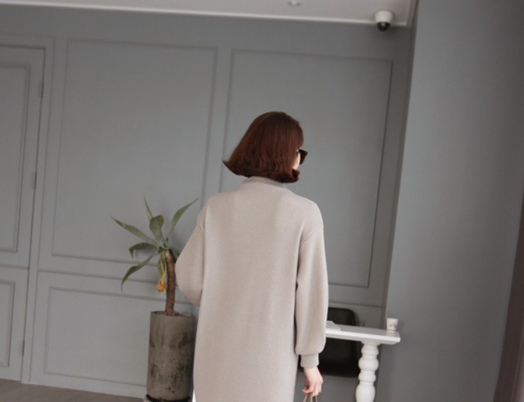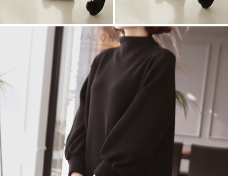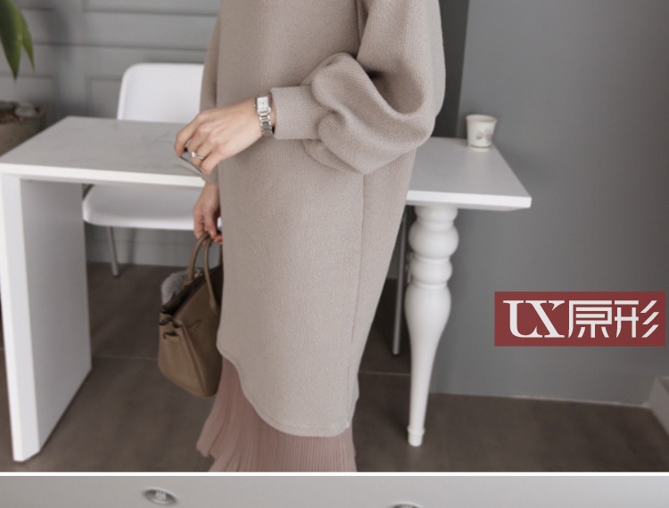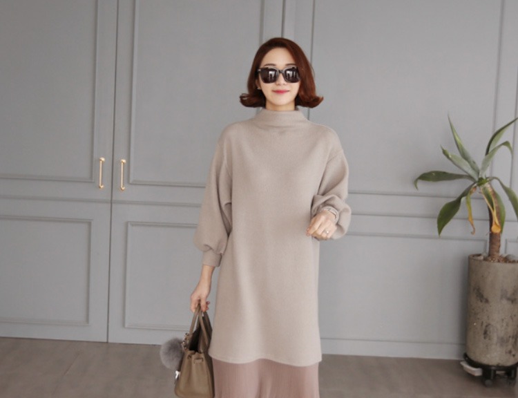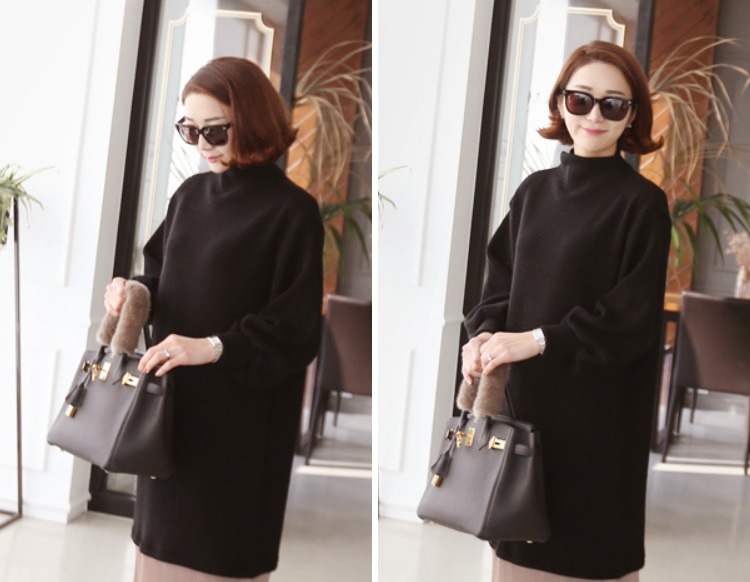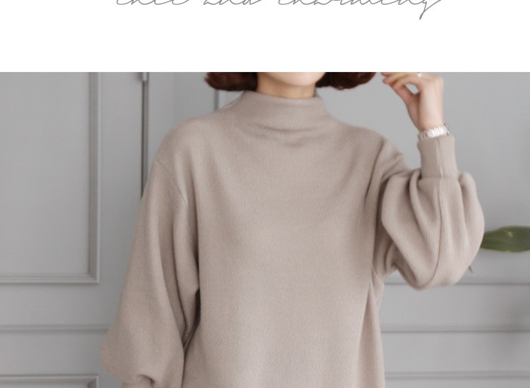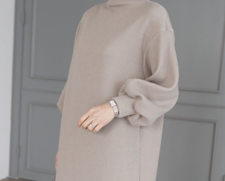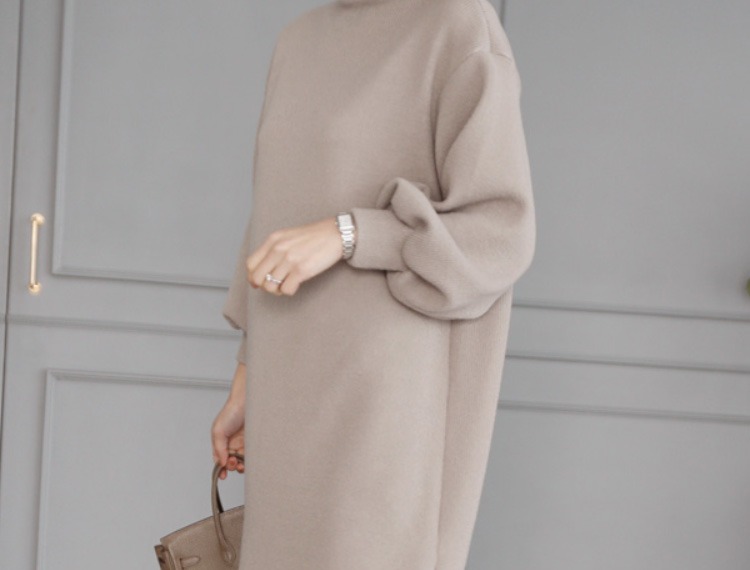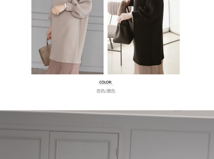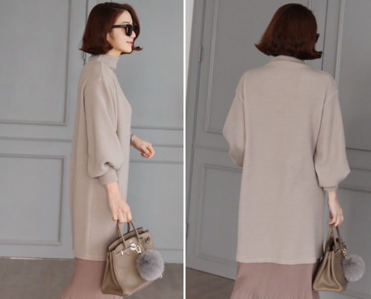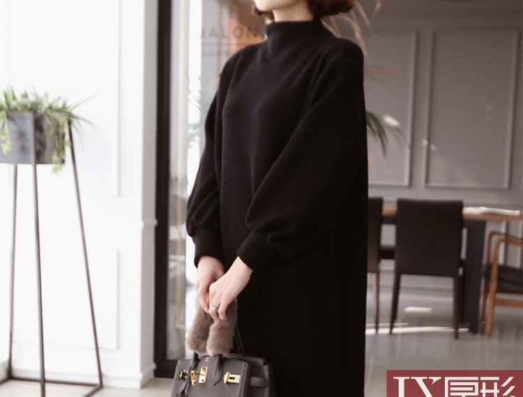【现货7天】针织灯笼袖连衣裙女 2023春秋新款韩版半高领中长款直筒裙子