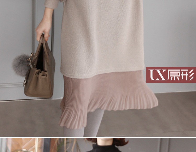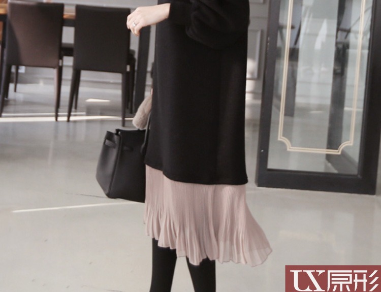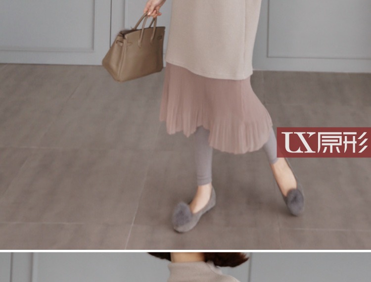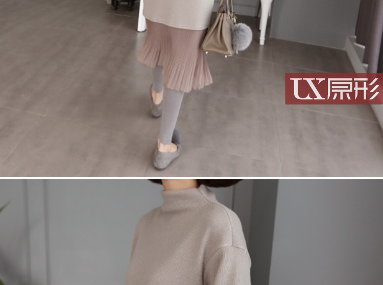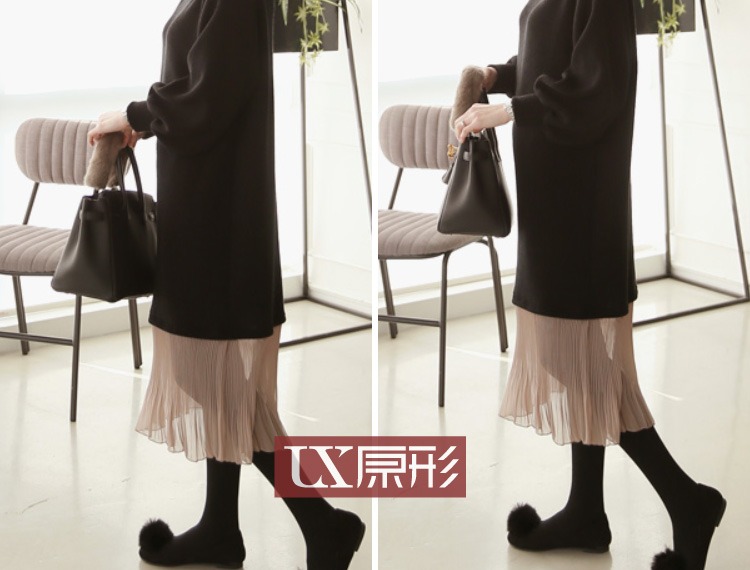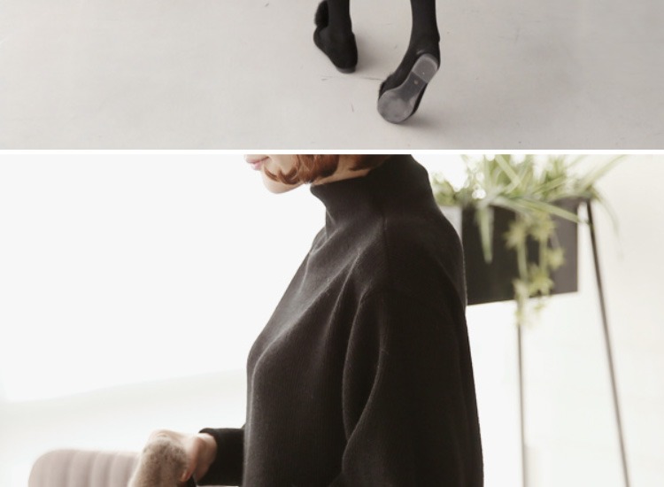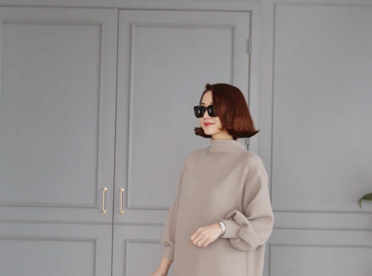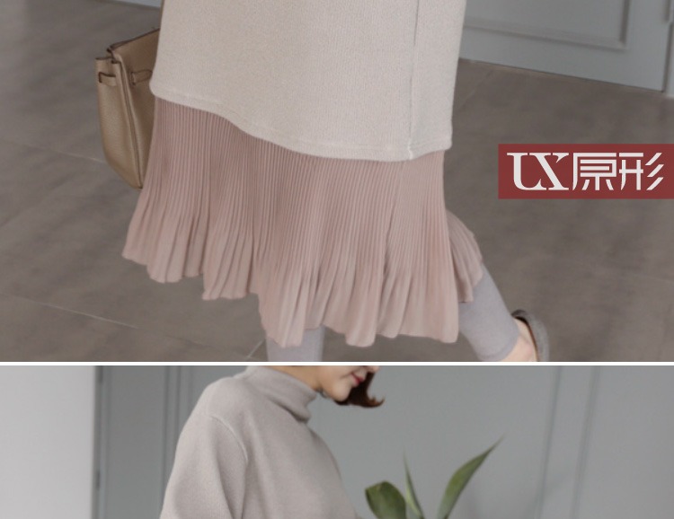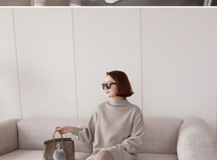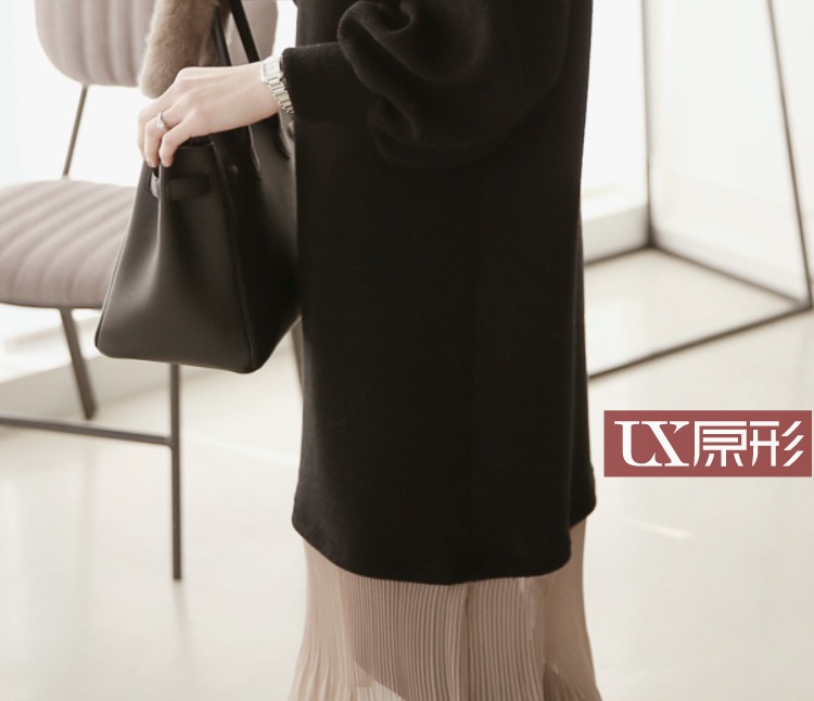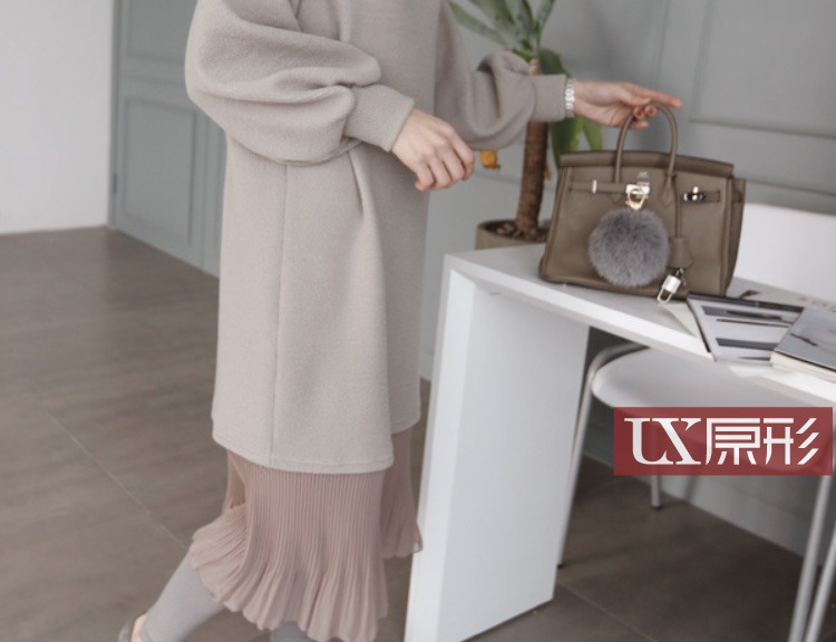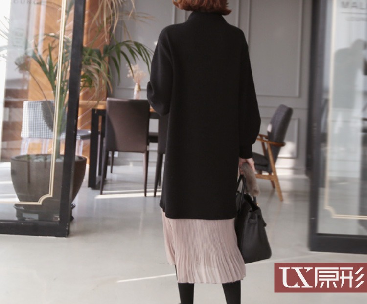 【现货7天】针织灯笼袖连衣裙女 2023春秋新款韩版半高领中长款直筒裙子