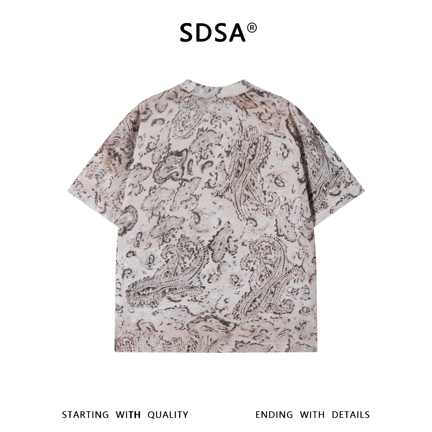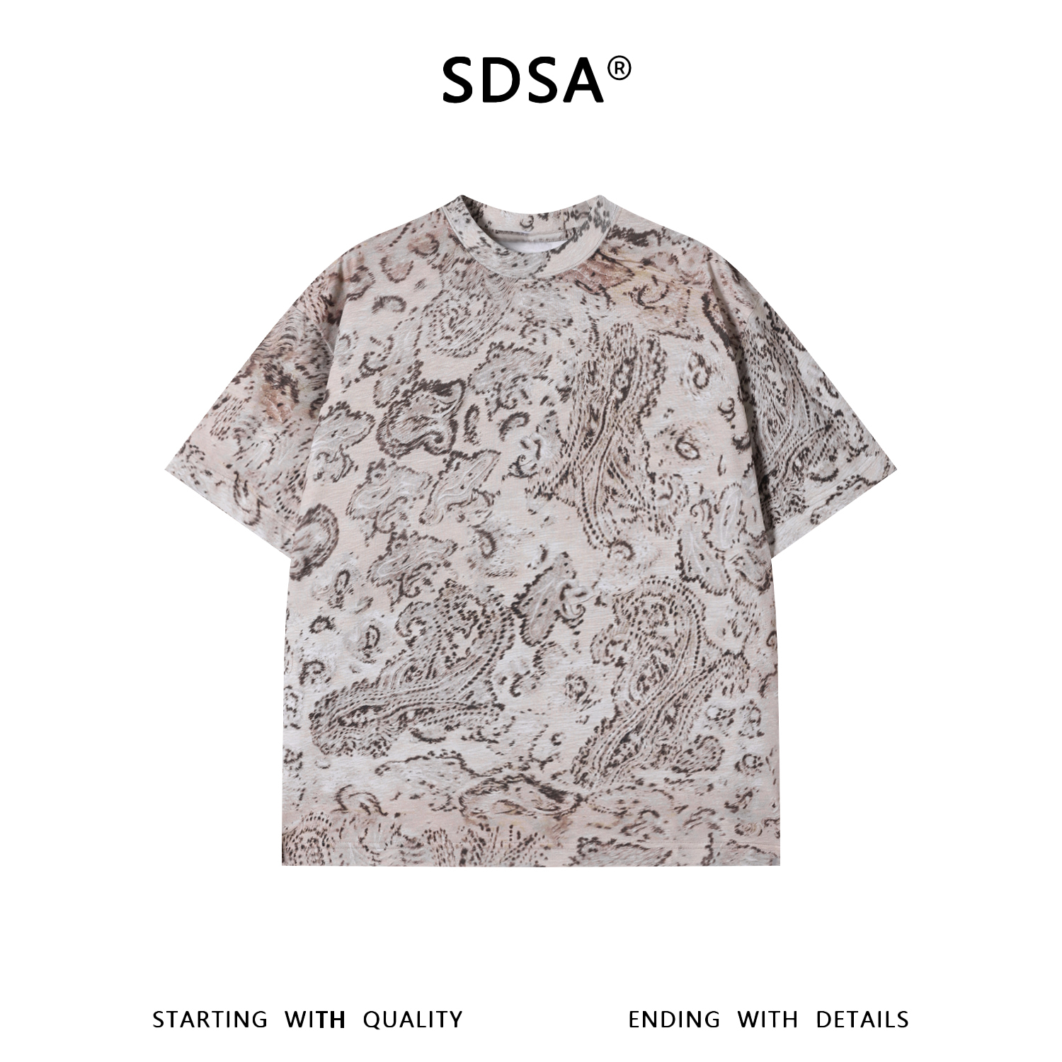 SDSA男装2026新款高贵轻奢时尚简约撞色满印圆领短袖T恤百搭上衣