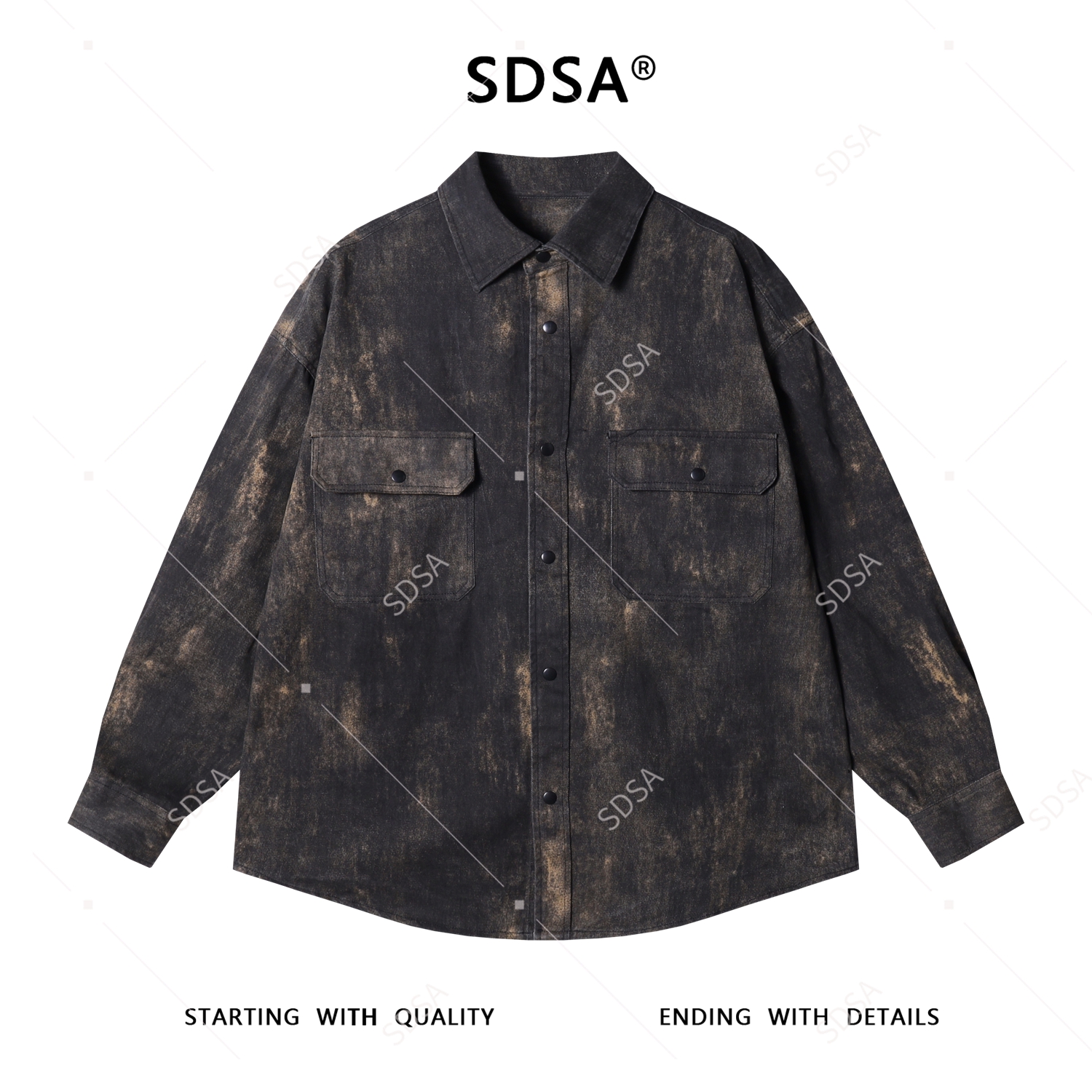 252206SDSA男士秋冬新款痞帅男装潮牌街头做旧翻领长袖衬衫扎染时尚衬衣