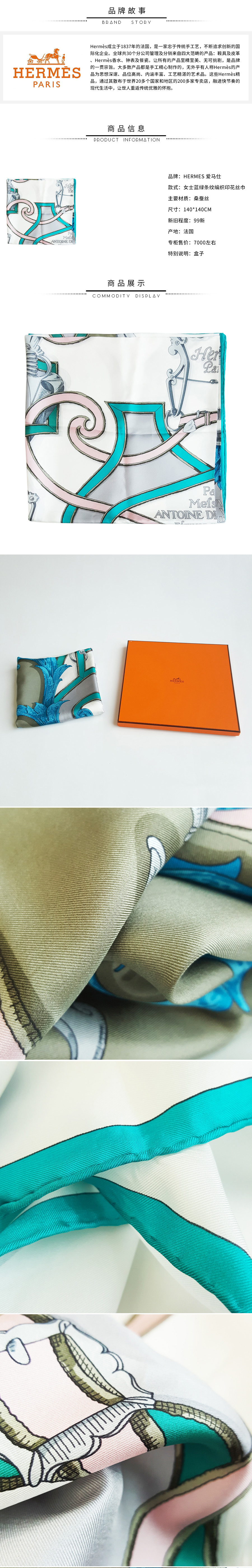 【99新】爱马仕(HERMES)女士蓝绿条纹编织印花丝巾241218TH01