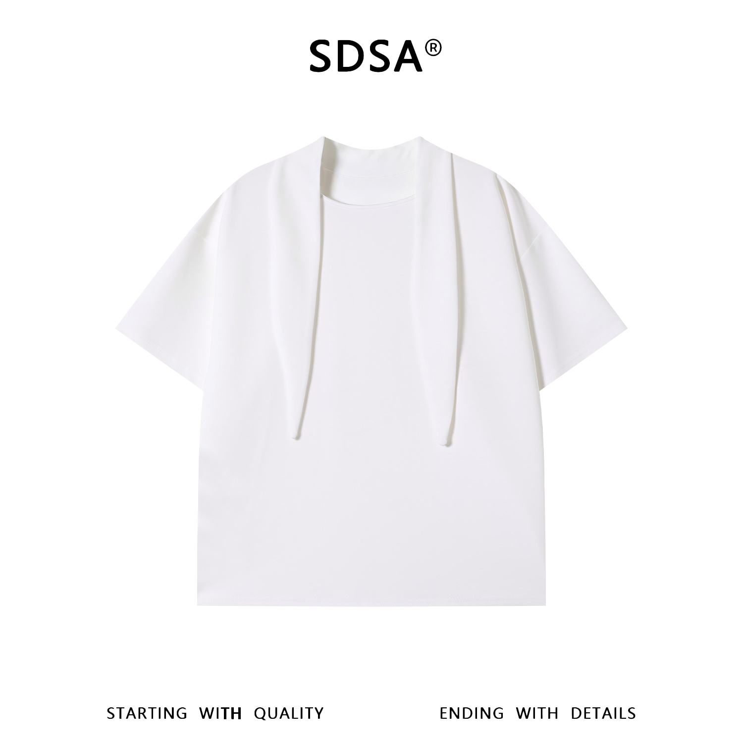 SDSA男装2026新款高贵轻奢韩系纯色系带设计短袖T恤百搭时尚上衣