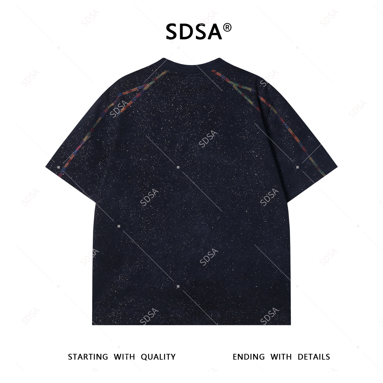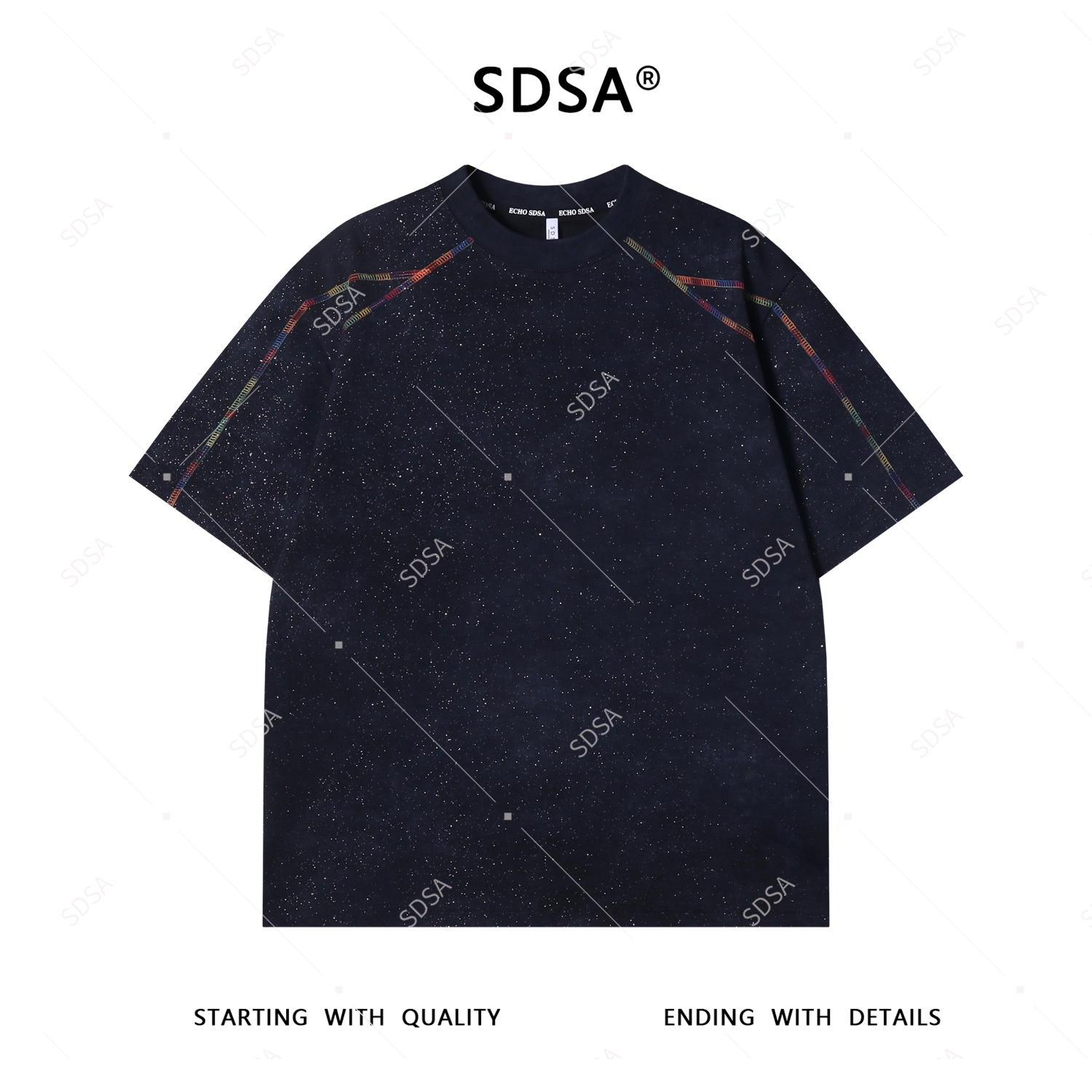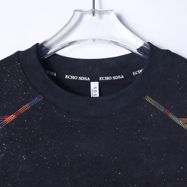T3877夏季高级感新款男士简约彩色缝线设计短袖T恤满天星宽松圆领上衣