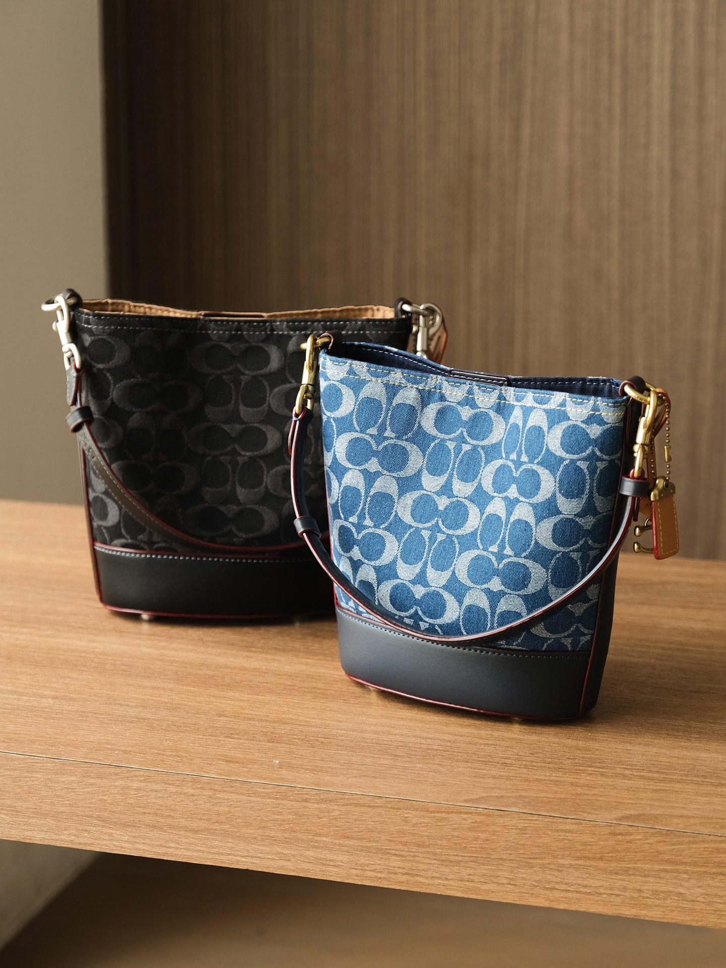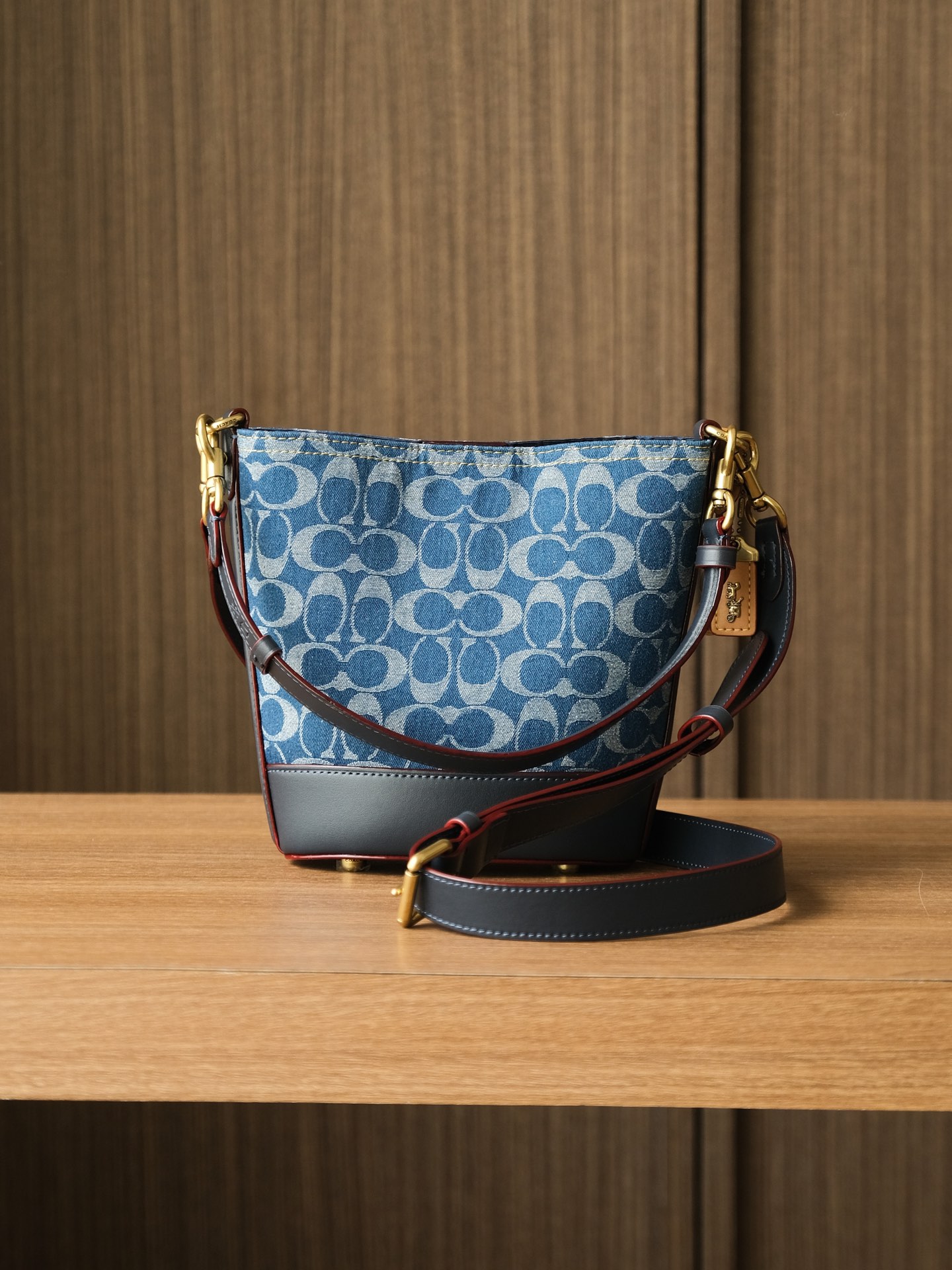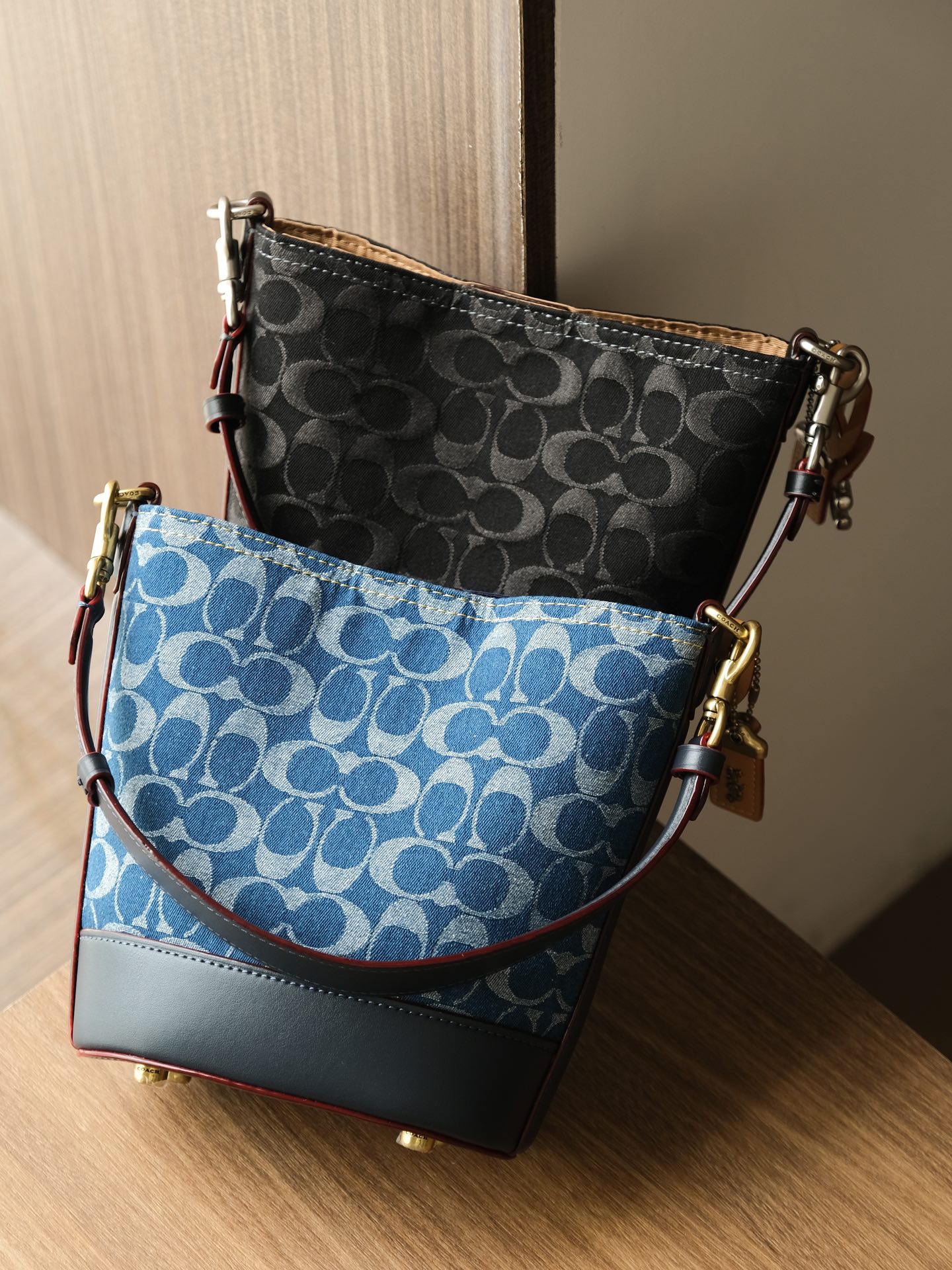 蔻驰/新款品丹宁系列 水桶斜挎手提包