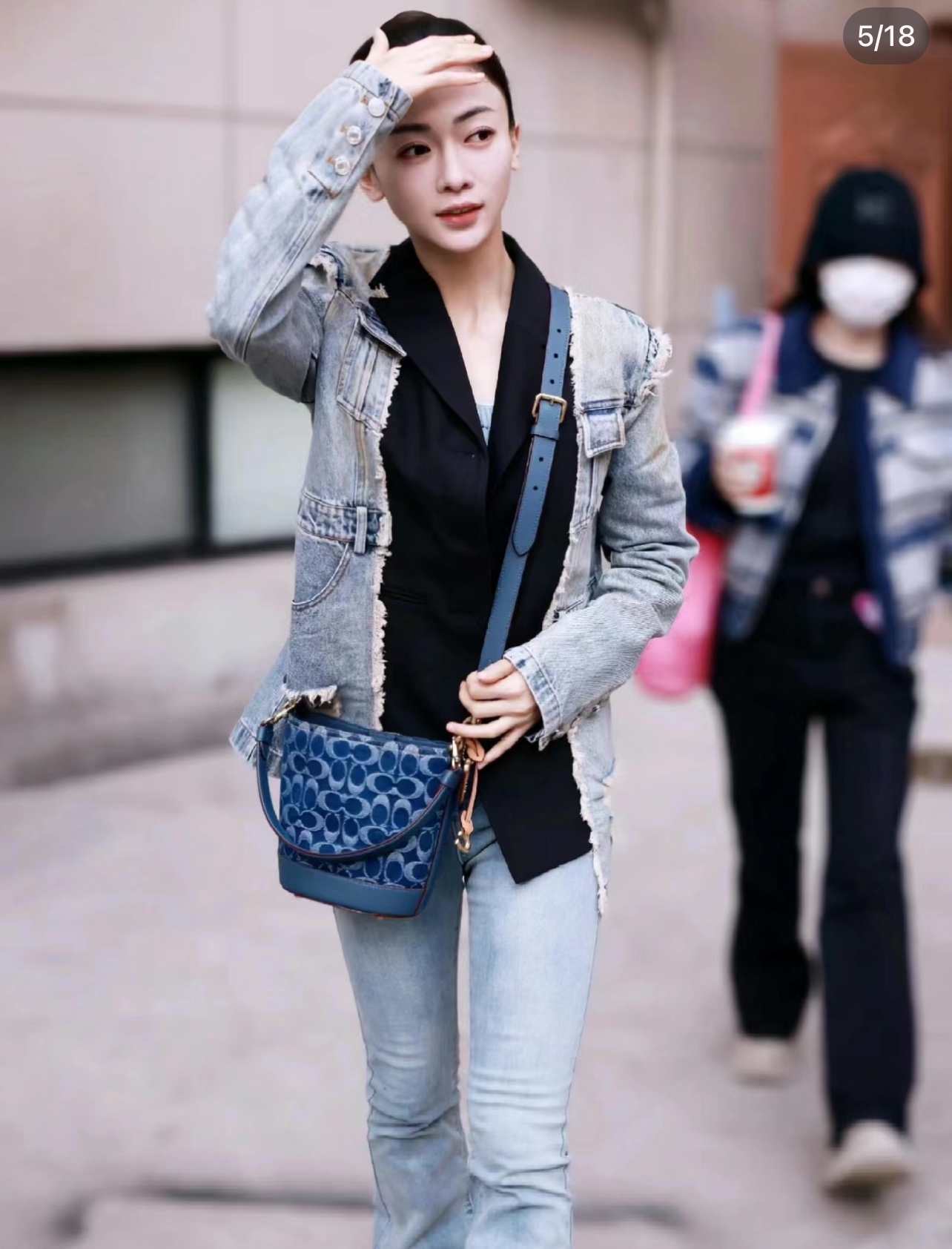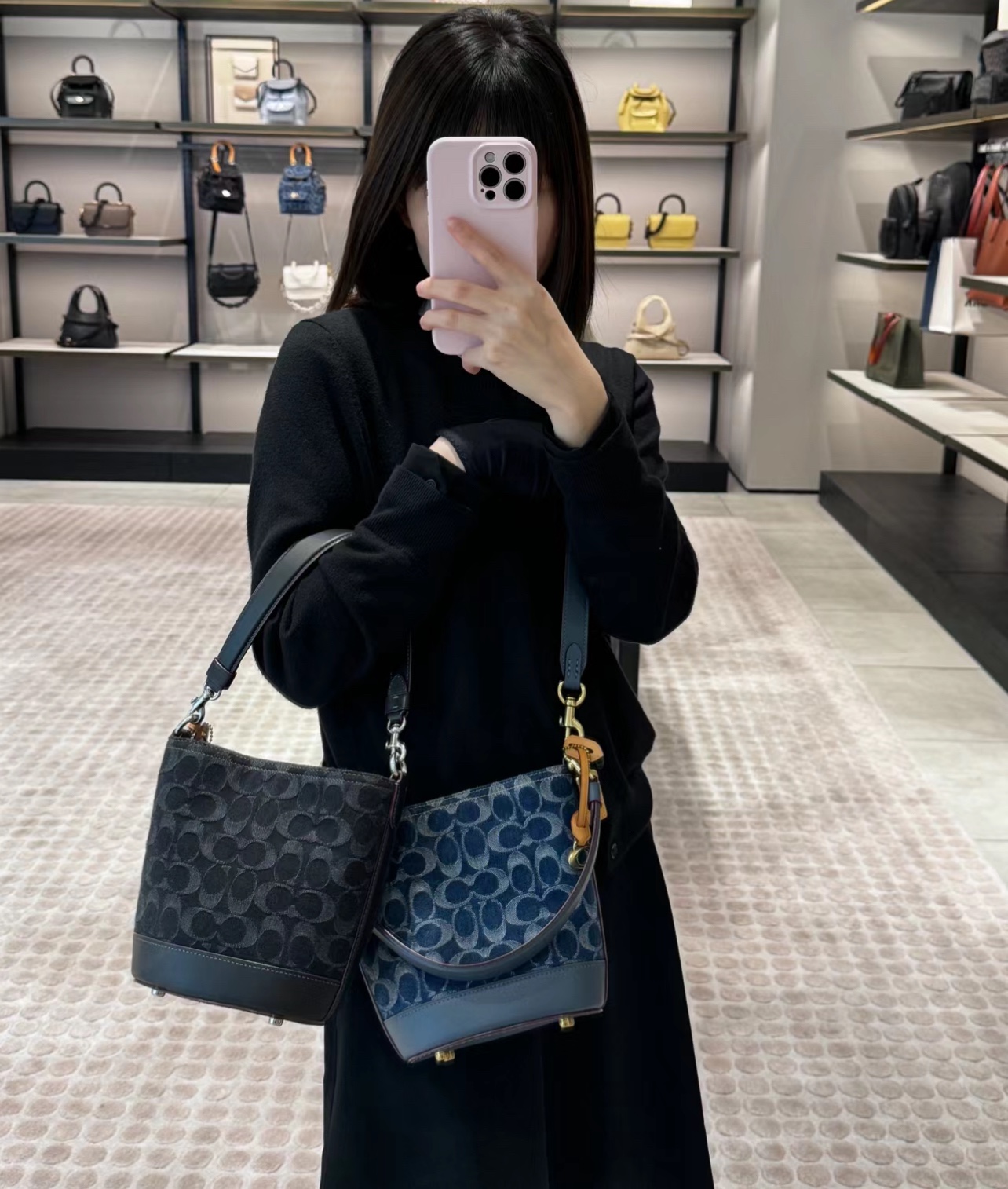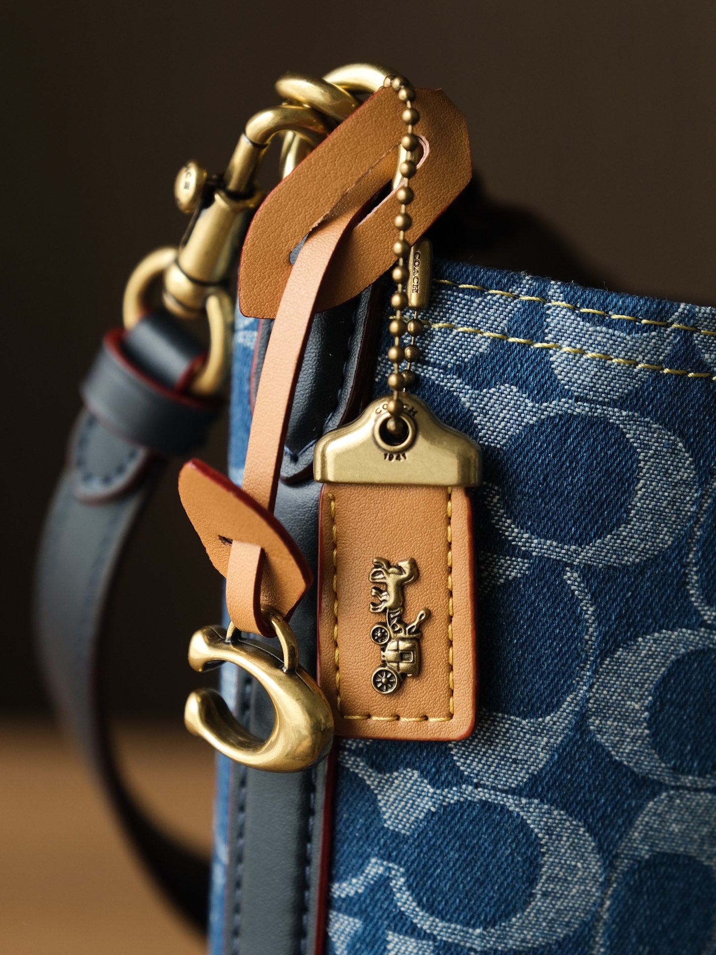 蔻驰/新款品丹宁系列 水桶斜挎手提包