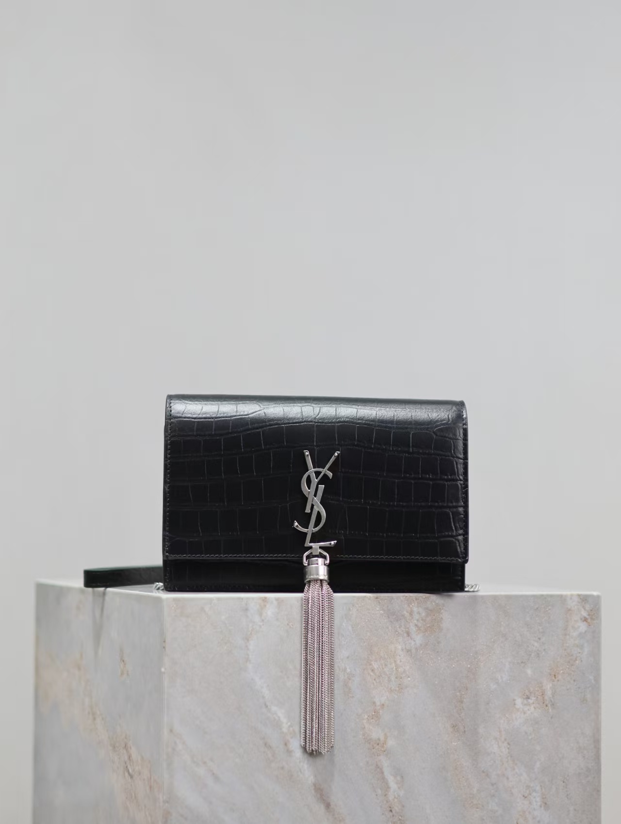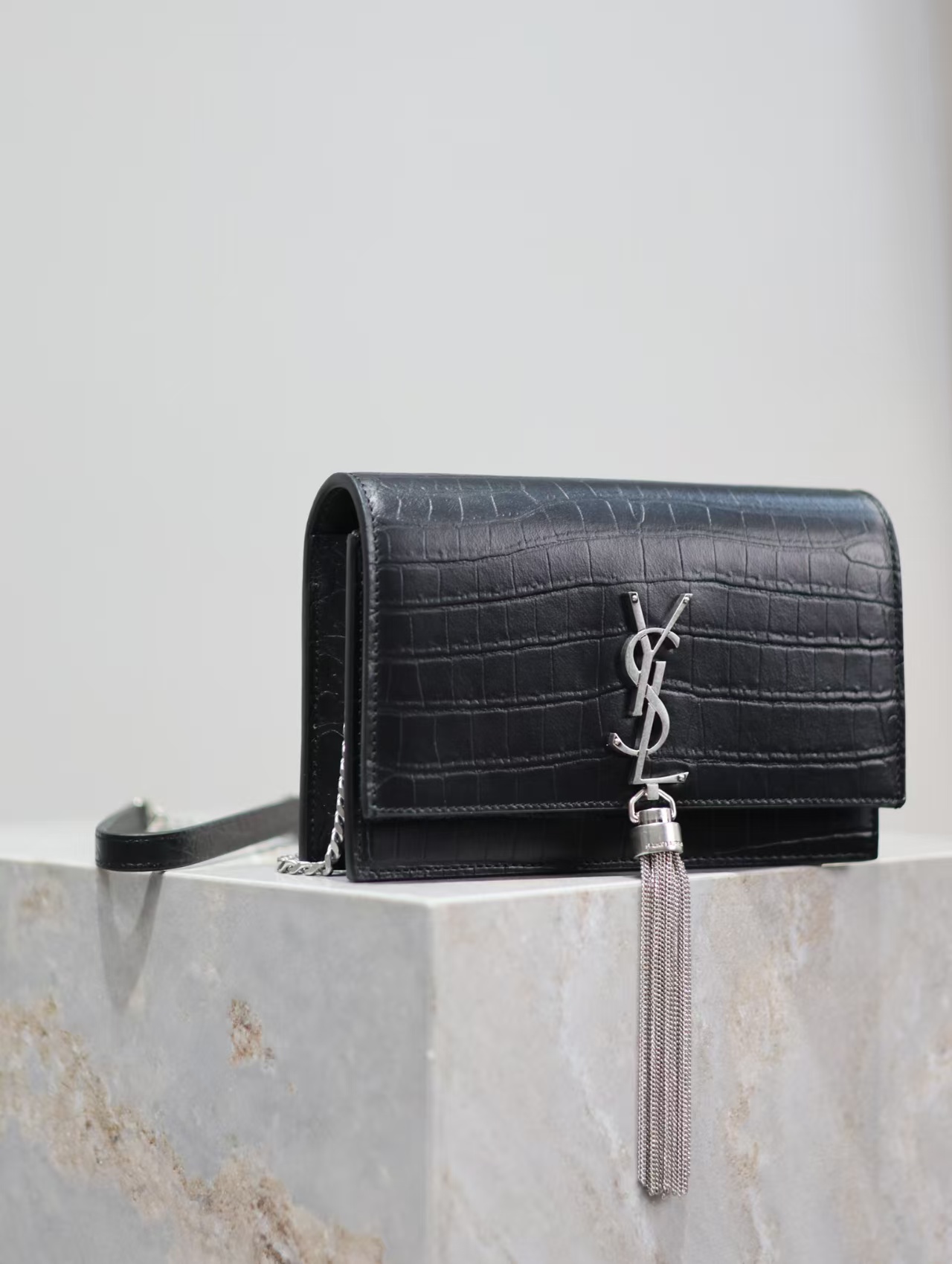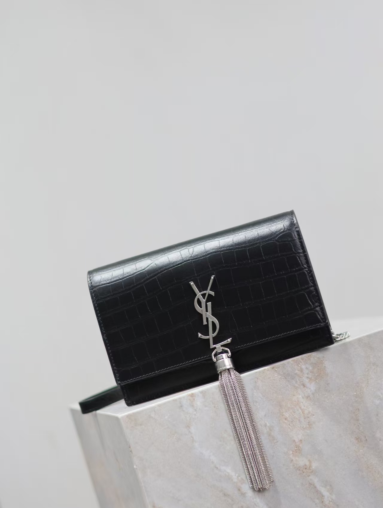 圣罗兰 【永恒经典】黑色银扣哑光鳄鱼纹 Kate_流苏链条包(LZ)