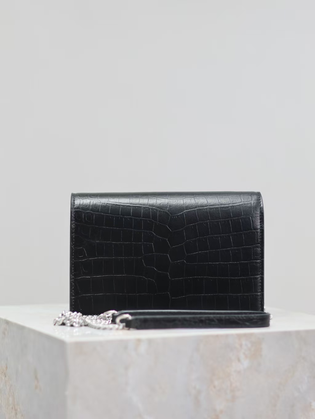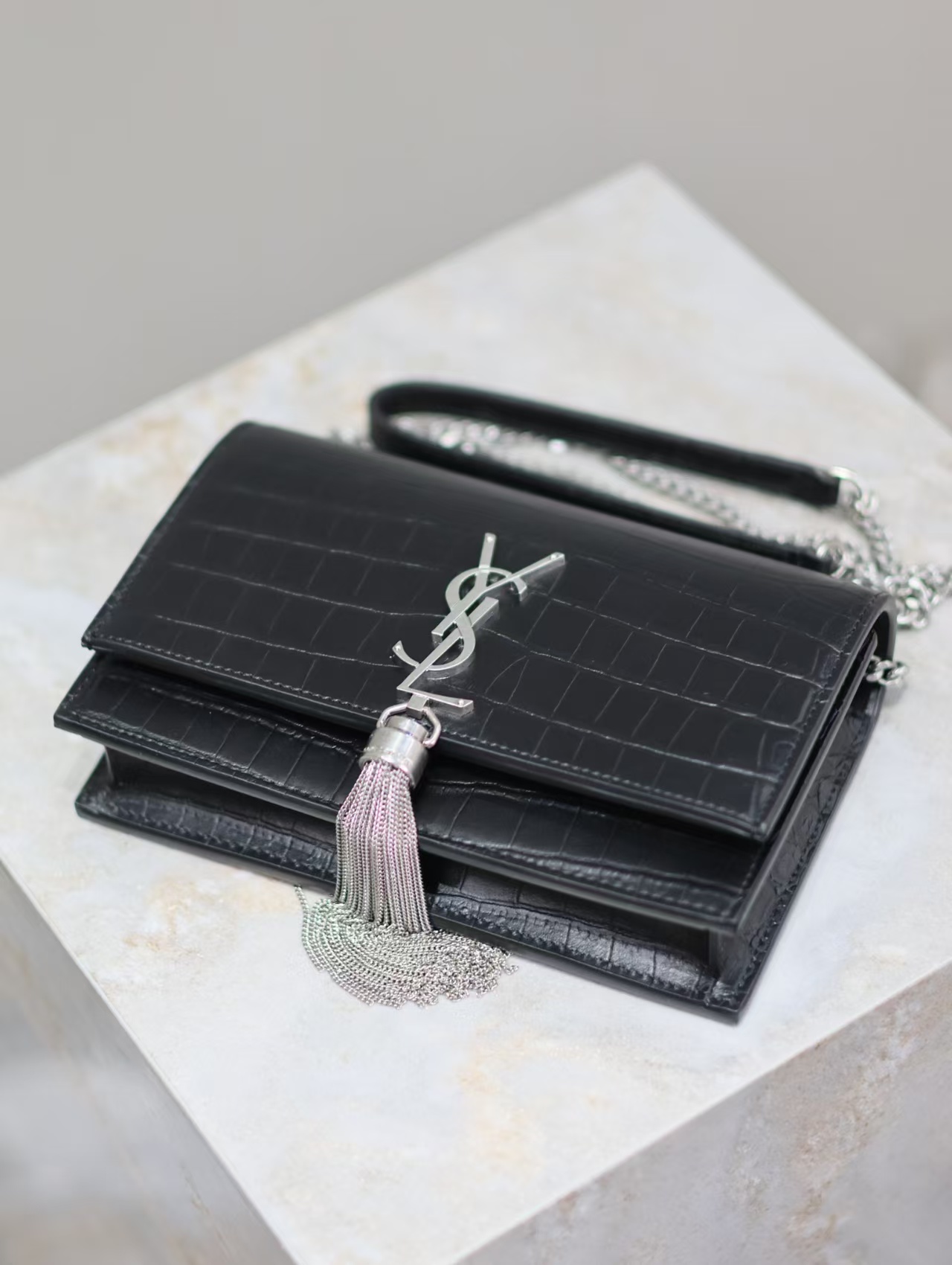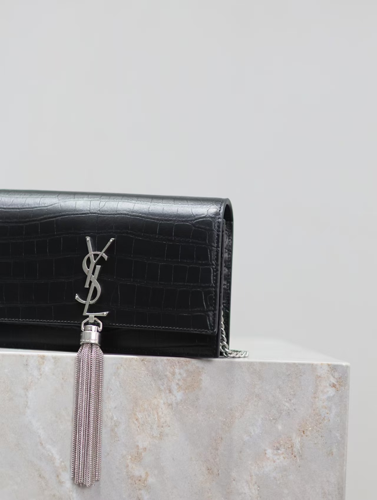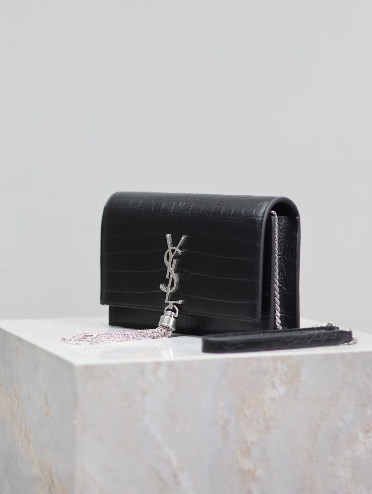 圣罗兰 【永恒经典】黑色银扣哑光鳄鱼纹 Kate_流苏链条包(LZ)