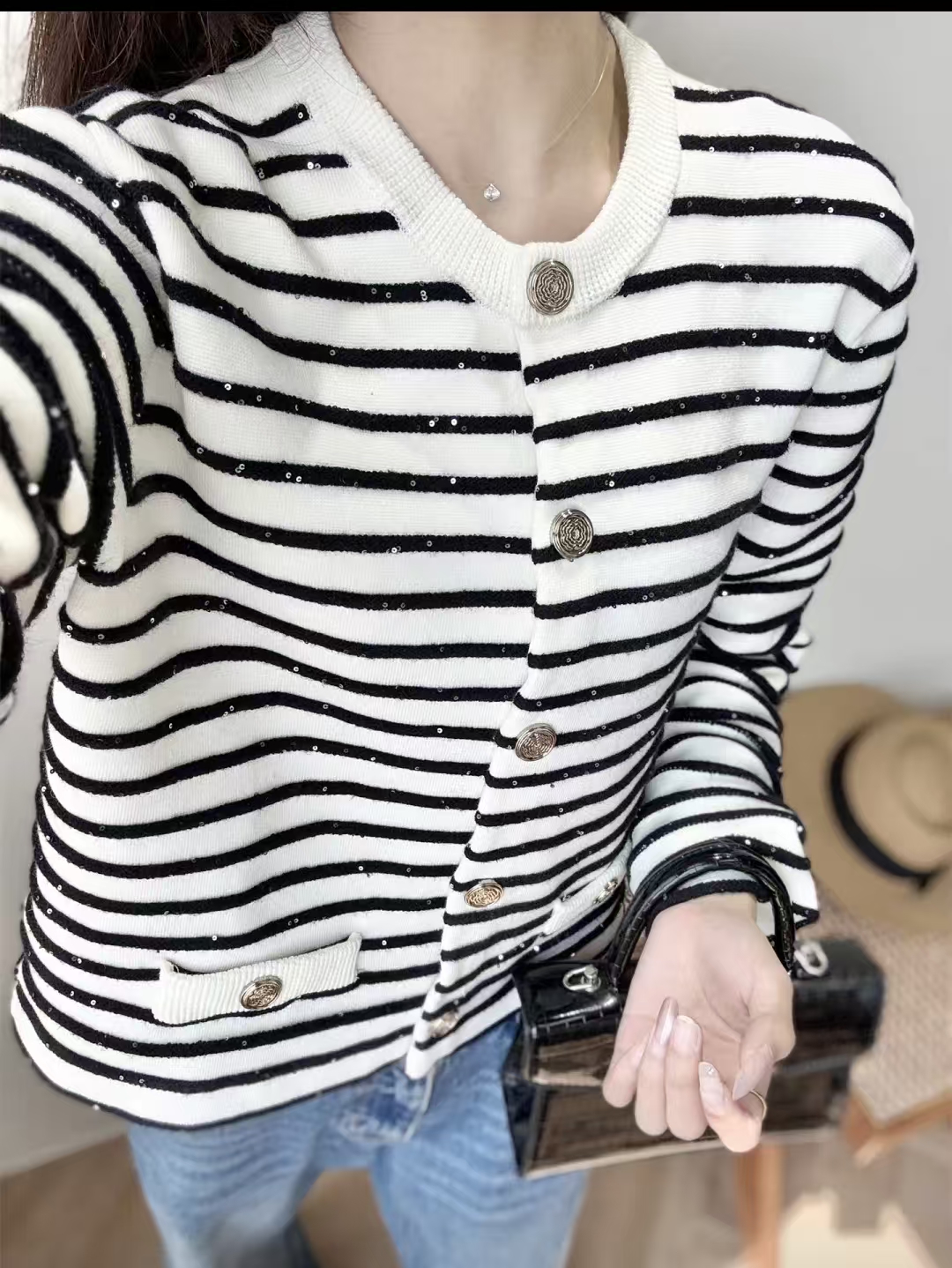 TY424-MAJE条纹珠片羊毛针织外套 (QQ) 9.10直播款