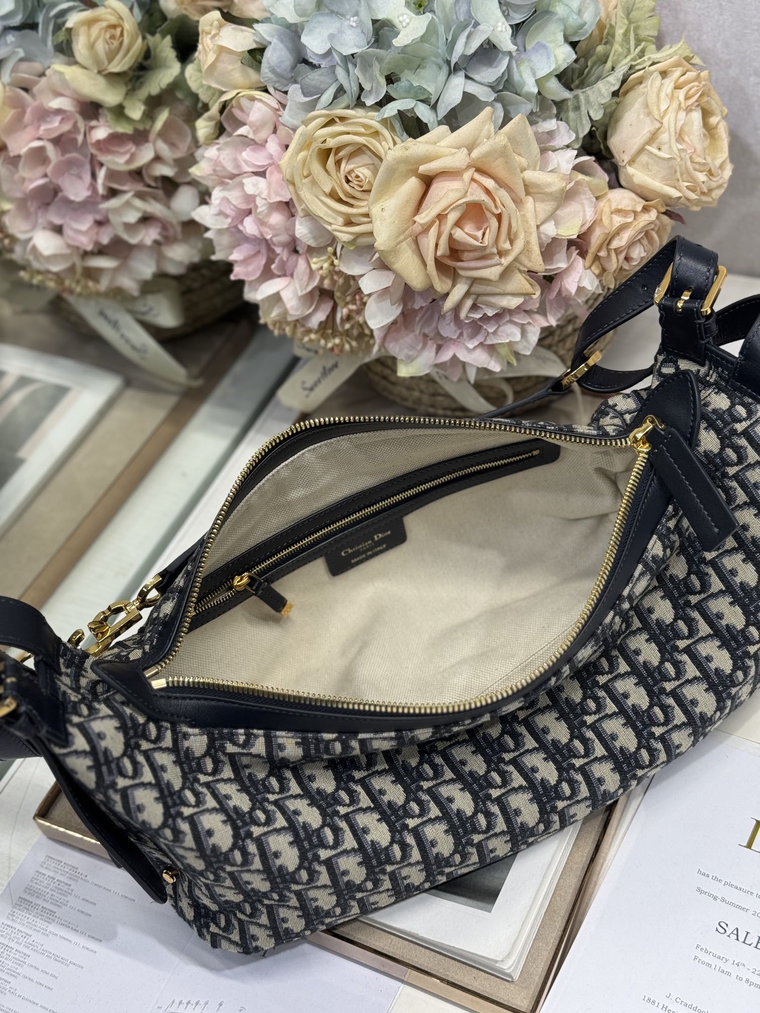 这款 D-Journey 手袋质地柔软,以摩登设计全新演绎水饺包廓形。采用蓝色 Oblique 印花面料等材质精心制作,主隔层内设有一个拉链口袋,两个侧面装饰性口袋搭配大号皮革拉链头,饰以 Christian Dior Paris 标志。中号款式,搭配可调节顶部皮革手柄和皮革肩带,可手提、肩背或斜挎,是日常造型的理想之选。