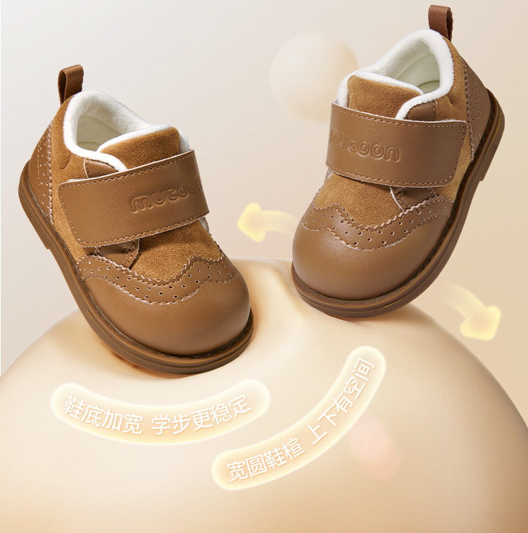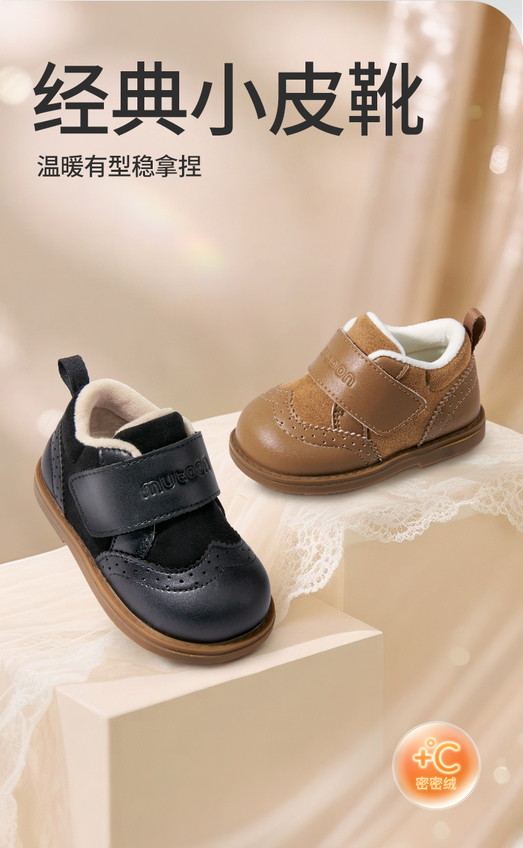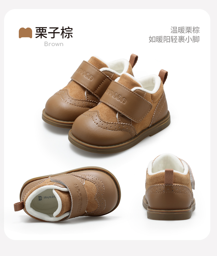 牧童2025冬季新款宝宝软底加绒小皮鞋防滑包头保暖男女童婴幼儿皮鞋