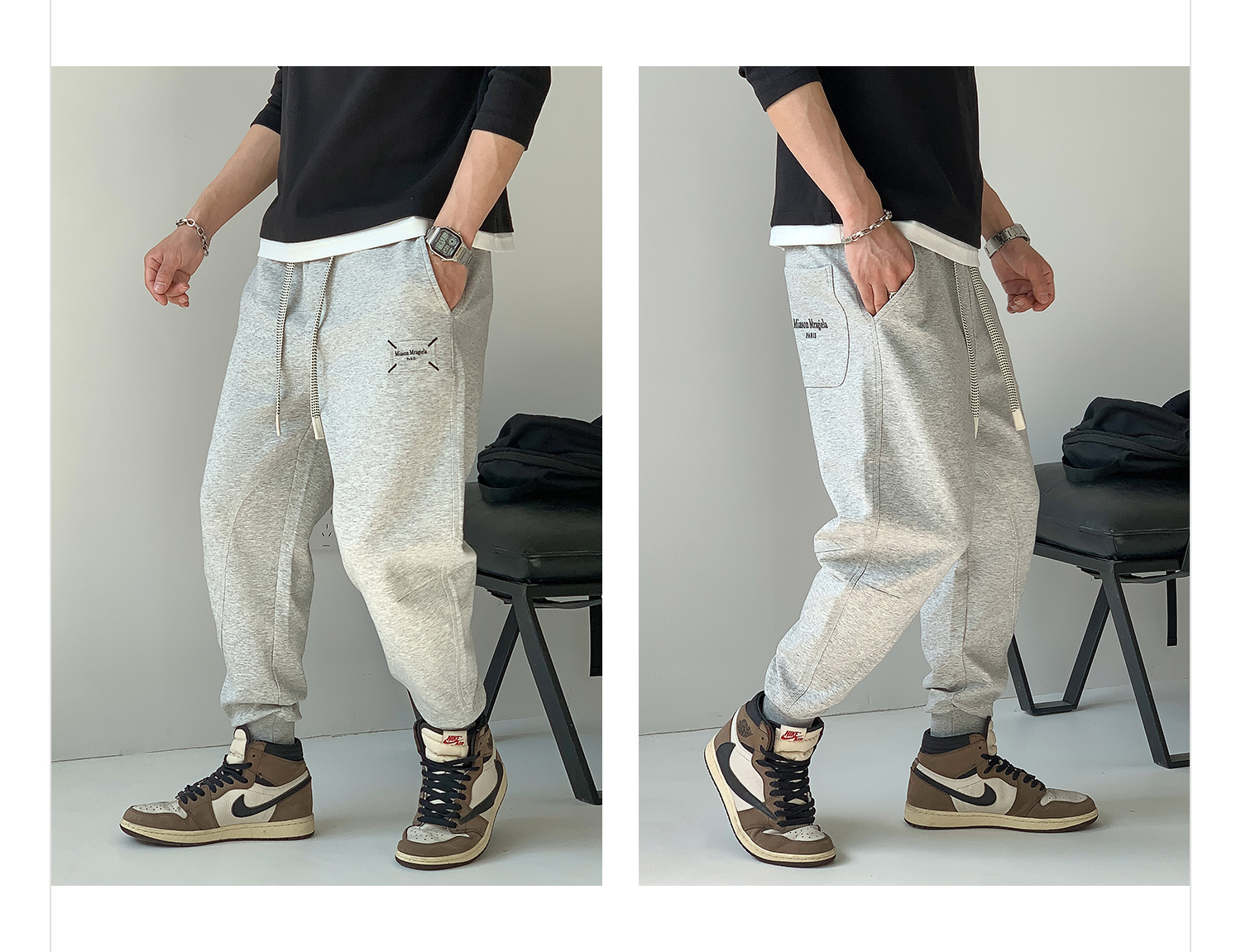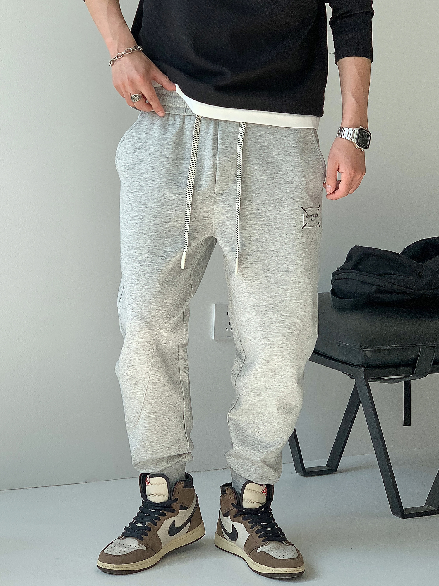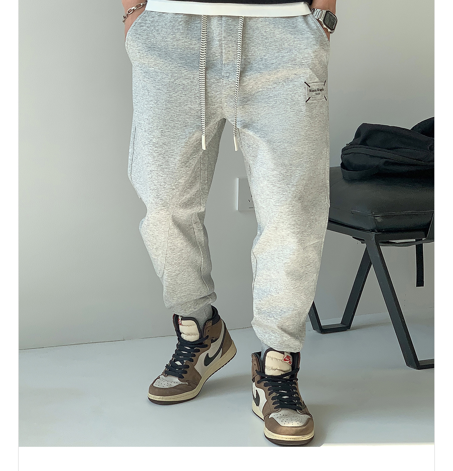 徐太浪灰色大码青年休闲裤男2025新款春秋系绳宽松束脚运动裤长裤