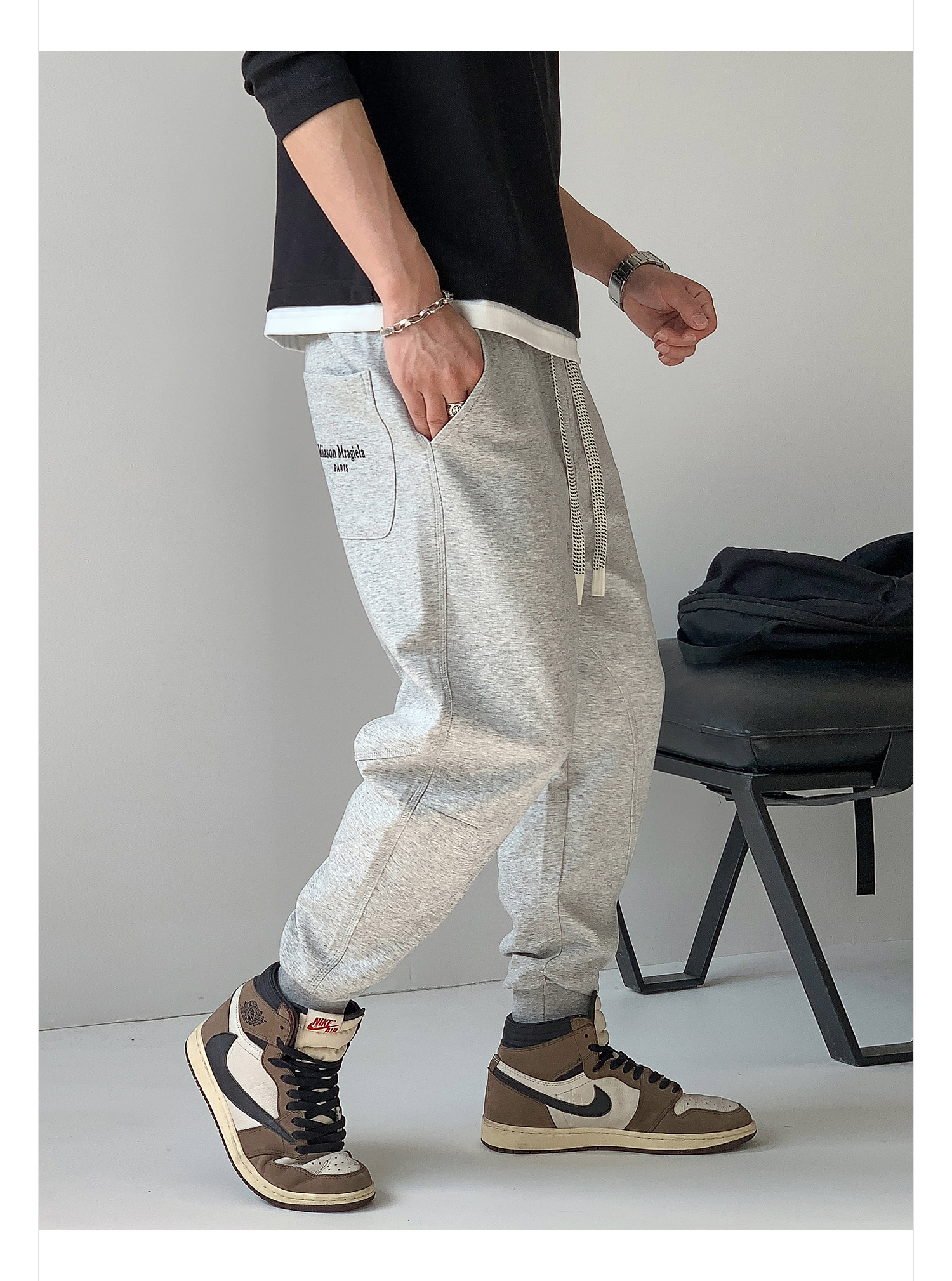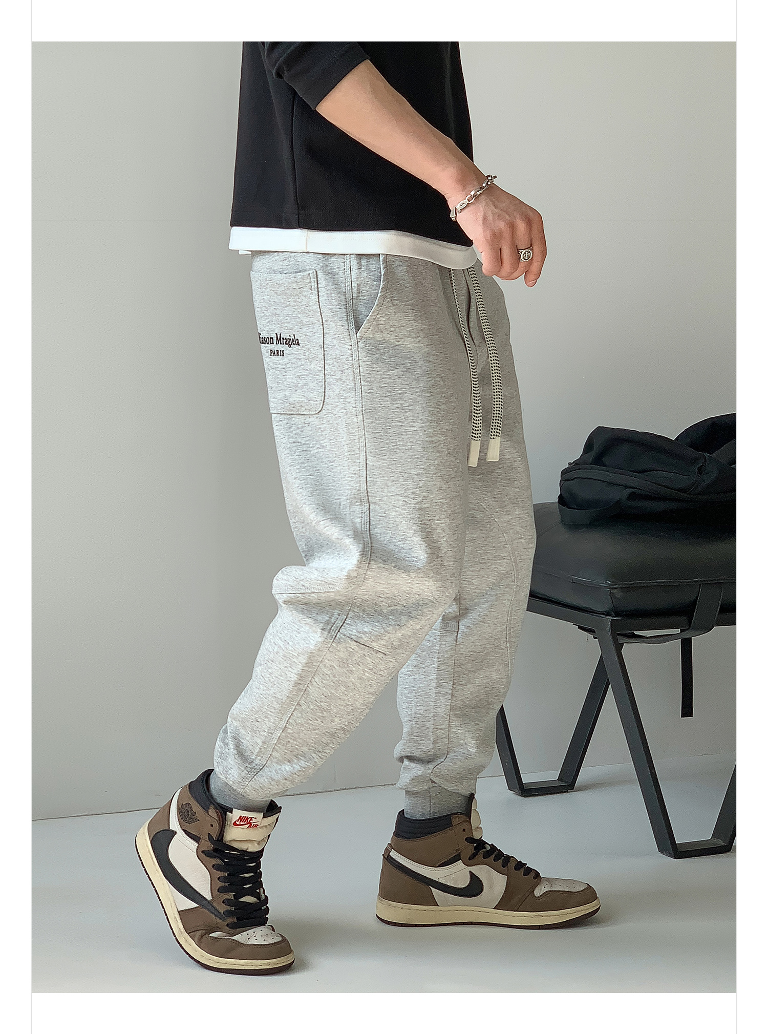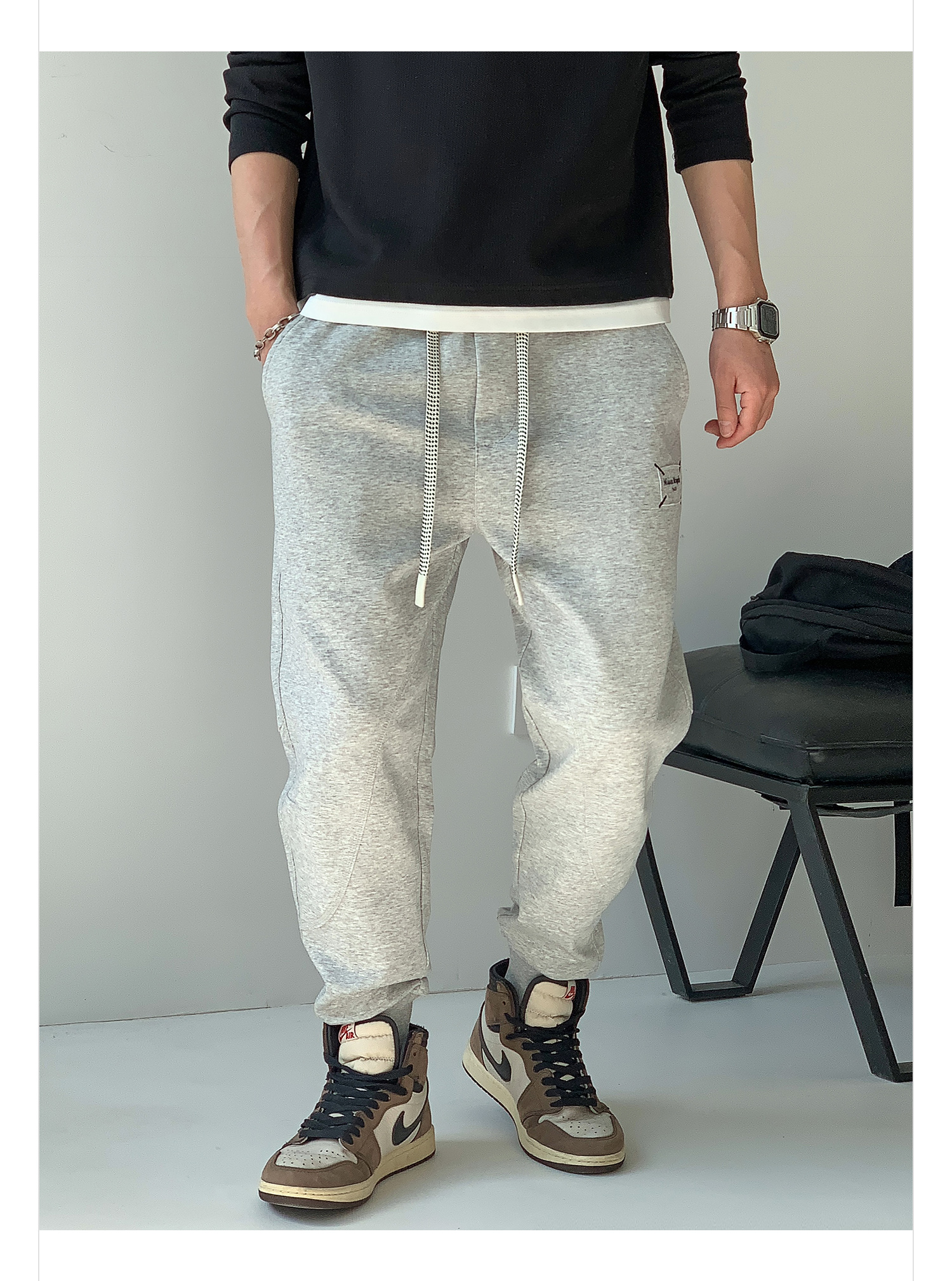 徐太浪灰色大码青年休闲裤男2025新款春秋系绳宽松束脚运动裤长裤