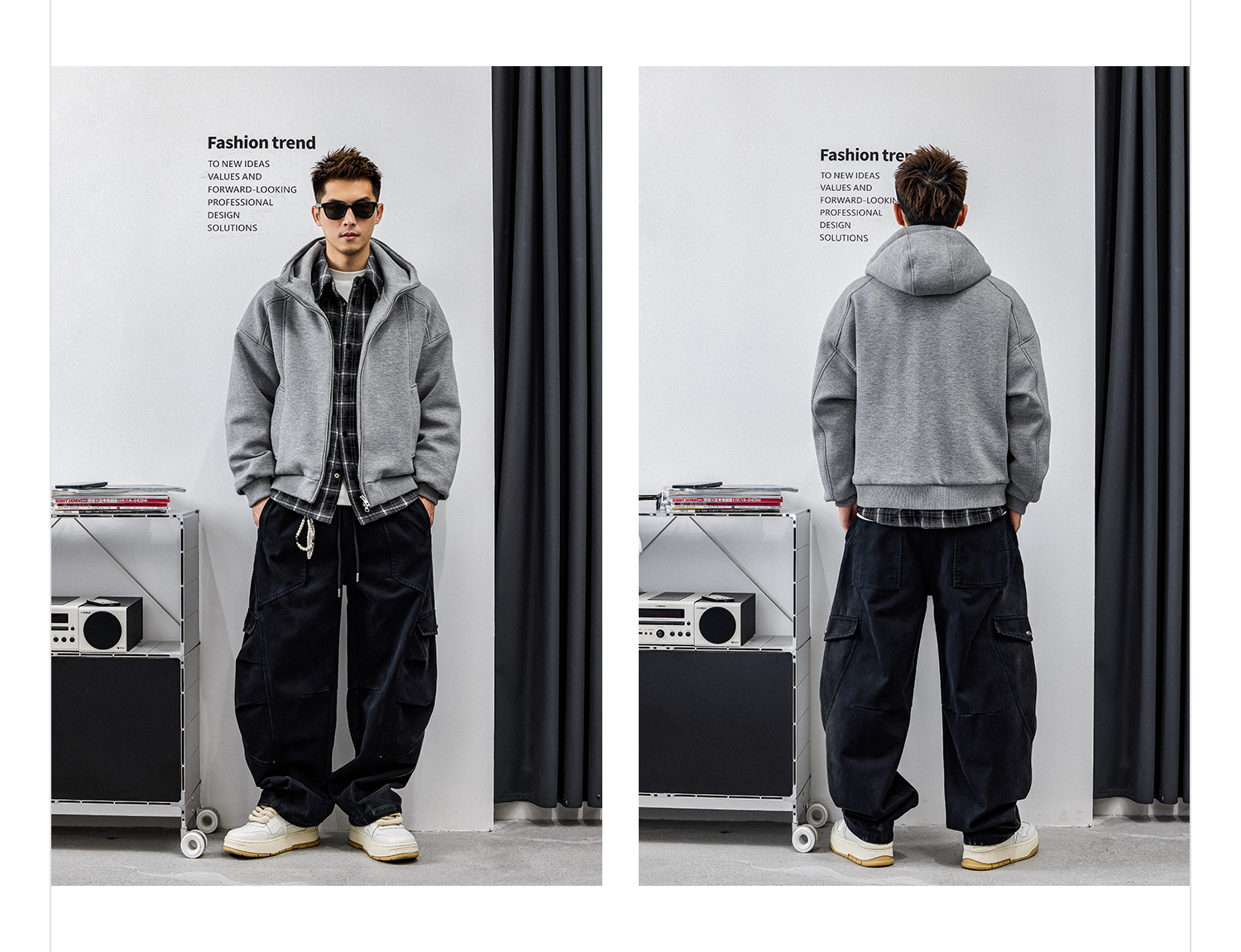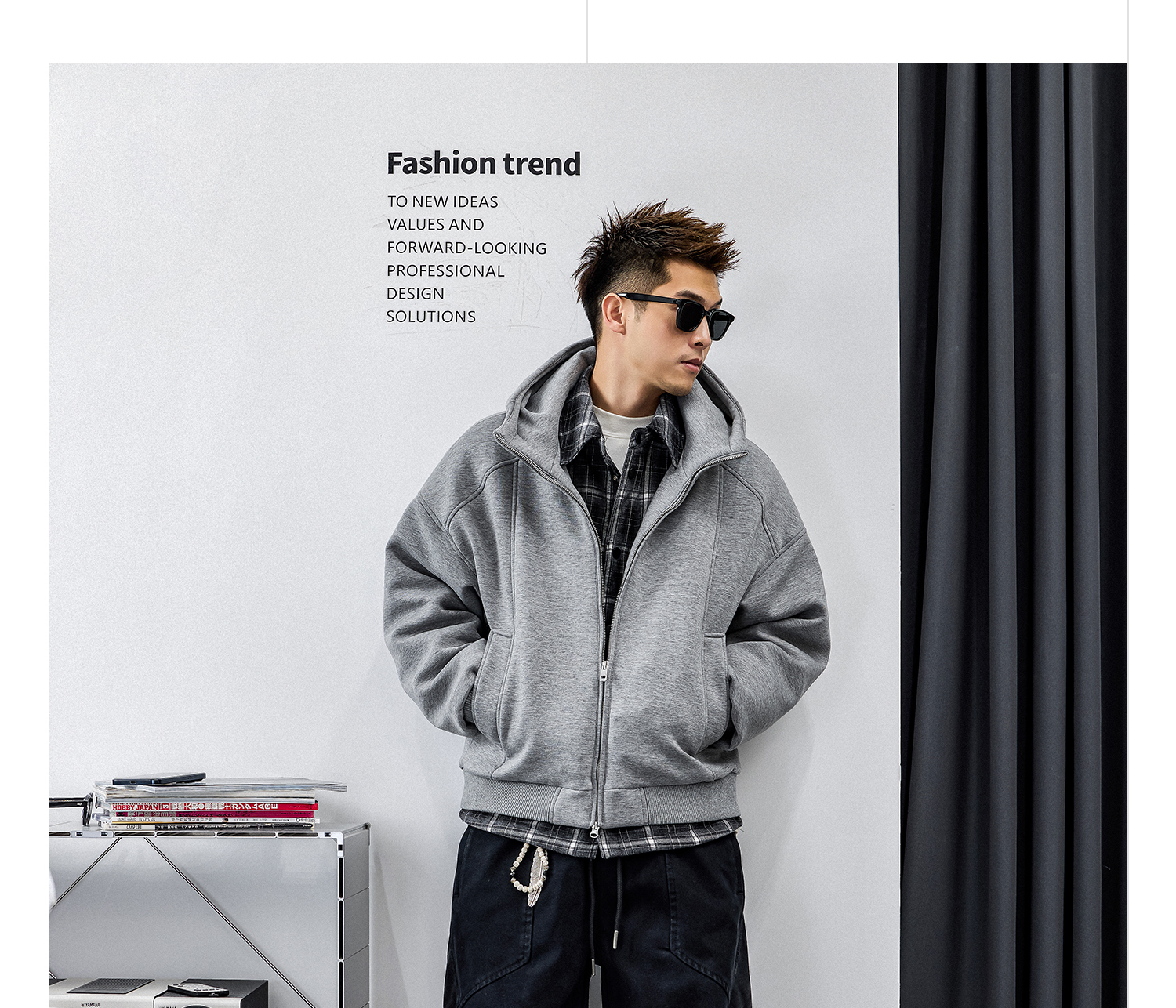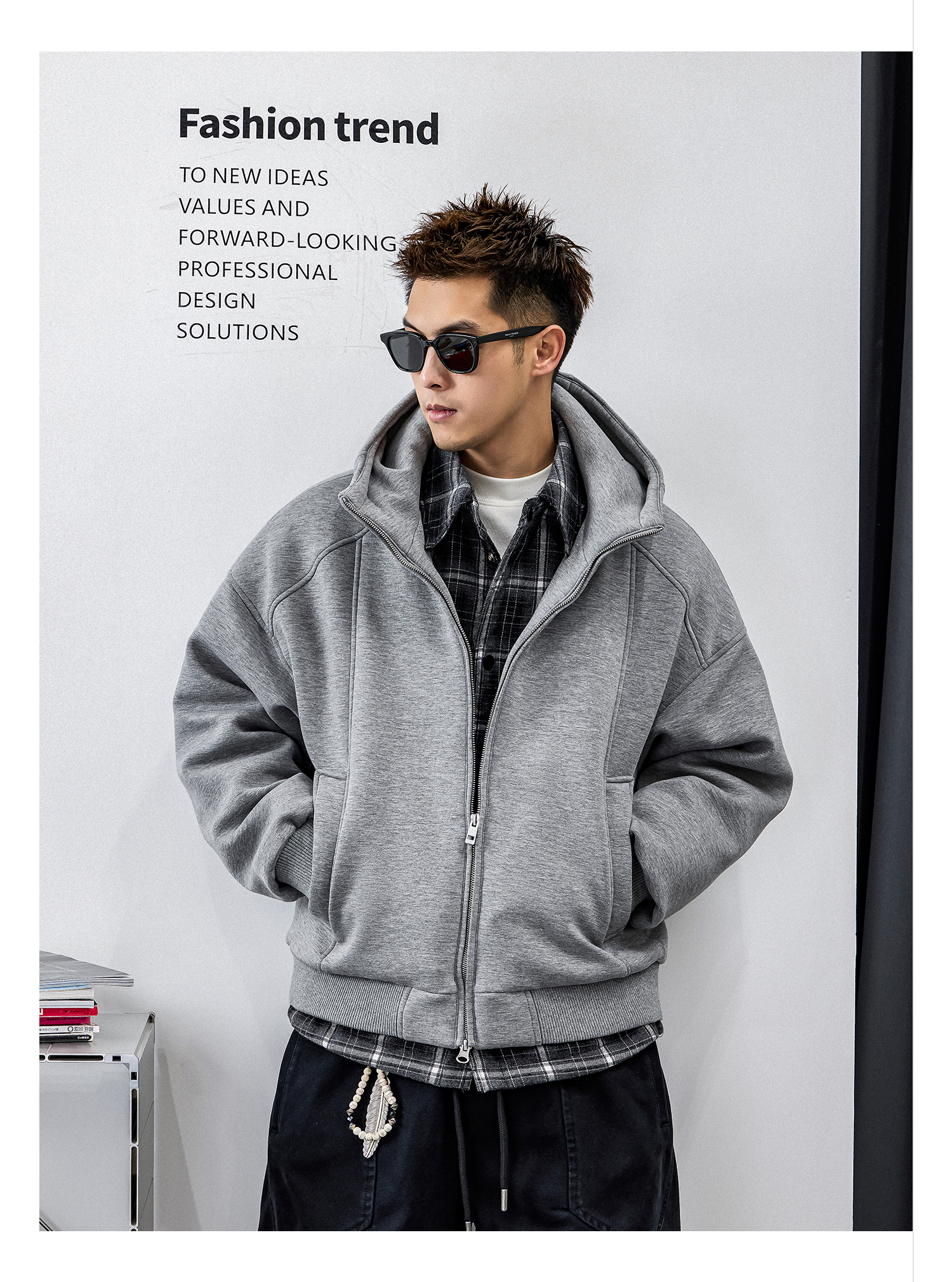 徐太浪【缉明线 高级感】连帽夹克男秋冬款大码男装青年防风外套