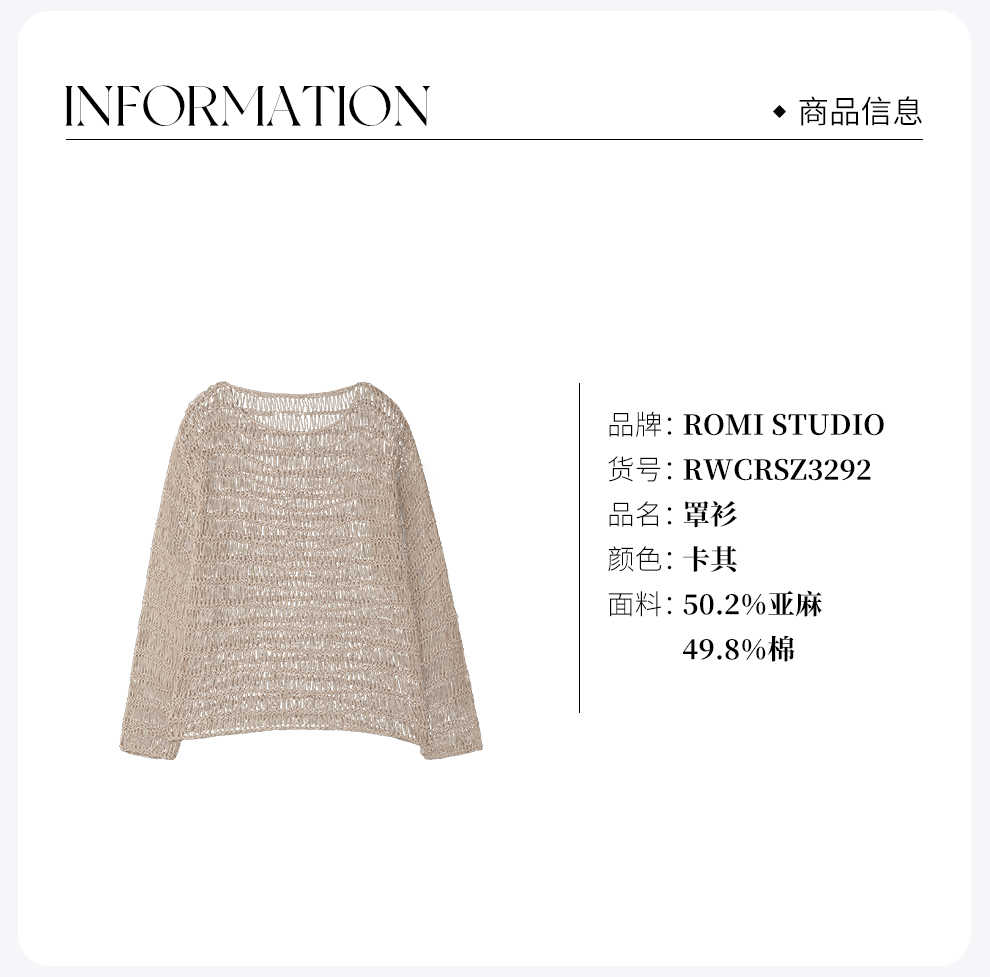 ROMI STUDIO“纵横交织”亚麻棉混纺手工钩织镂空罩衫 RWCRSZ3292 【发货时间:25-30天】
