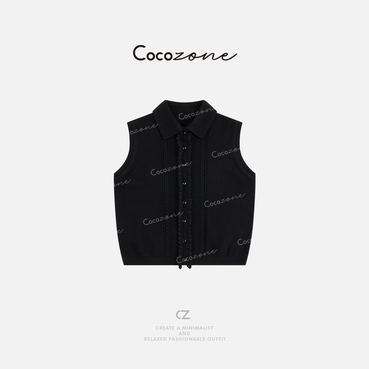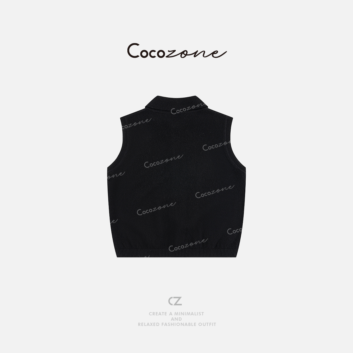 COCO ZONE 刘一一 100绵羊毛春季polo领无袖毛织背心CD2A0013