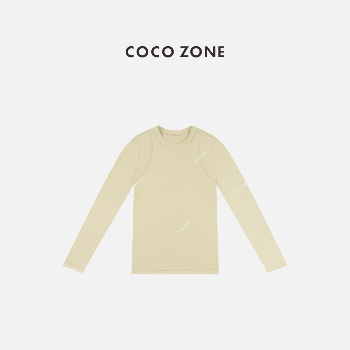 COCO ZONE 复古高级感长袖T恤纯色圆领套头上衣CC2C2342