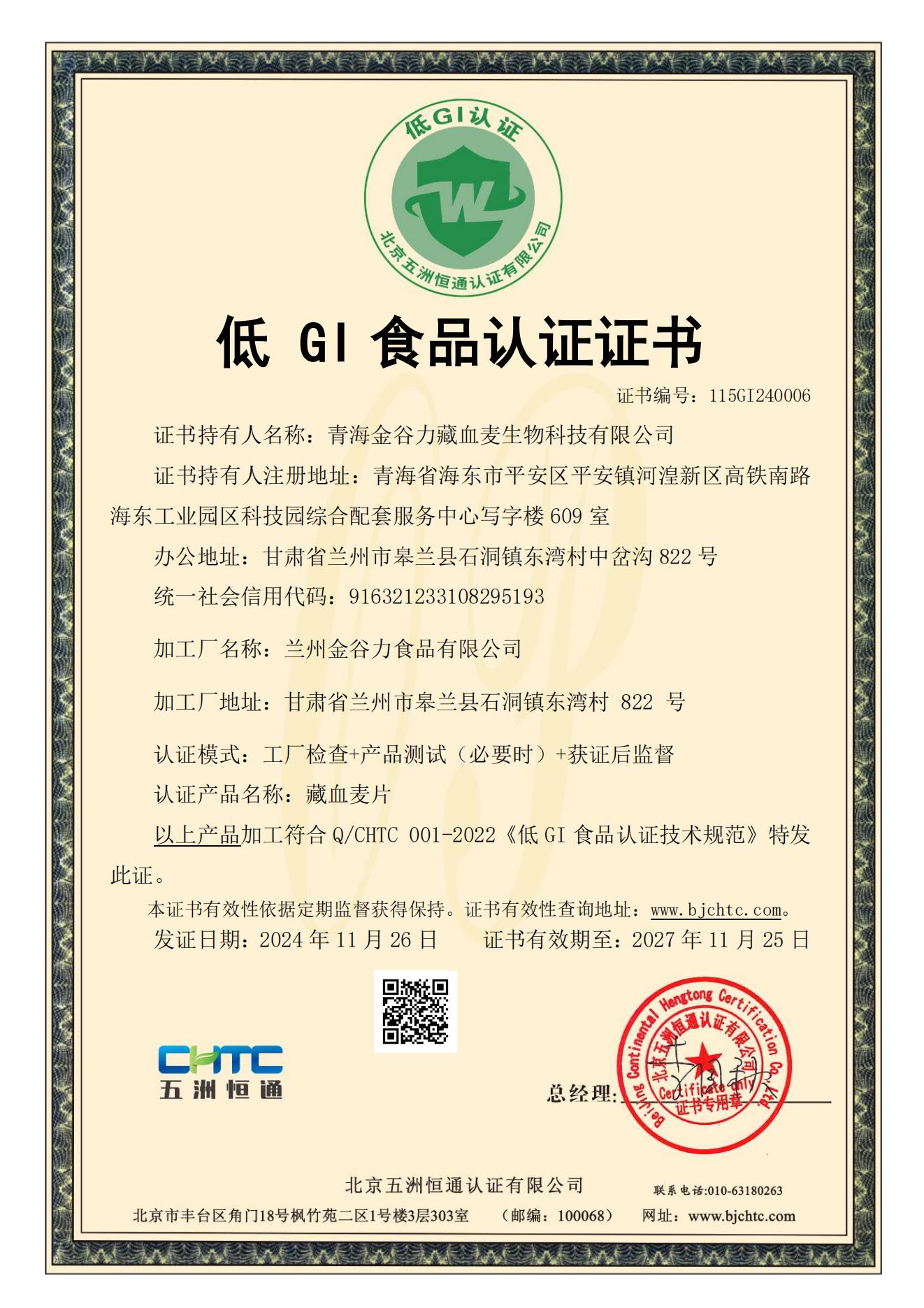 一错、碳水化合物的品种选错,要选低GI认证的食品,比如低GI藏血麦片。这个认证不仅仅是产品认证,还包含了专业严谨的临床医学认证,都是做过多例人体试验,才通过国家认可认监委颁发的认证。