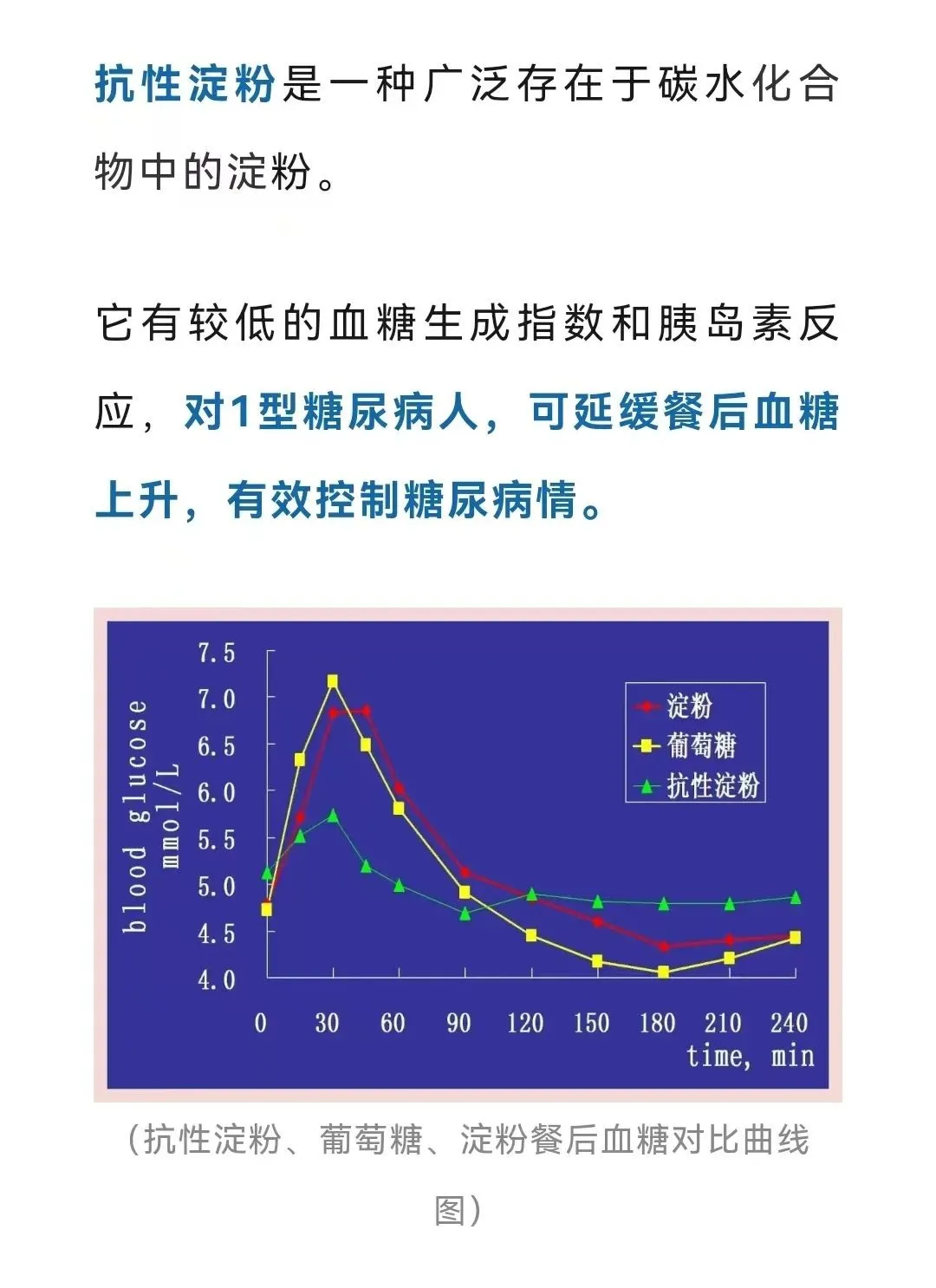 二、碳水化合物,产品中的淀粉大部分为抗性淀粉,不易升高血糖。碳水化合物是人类生存的基本物质和能量主要来源。膳食中碳水化合物应占能量的60%左右。