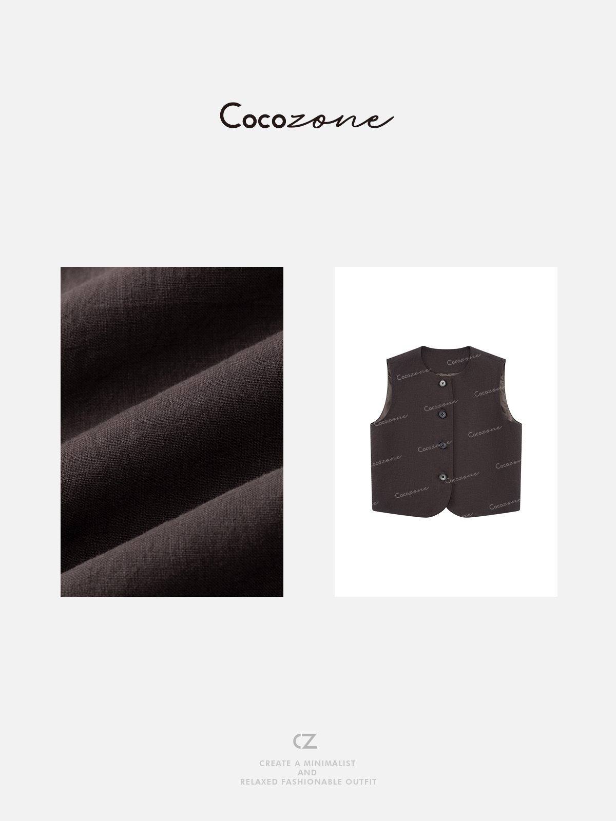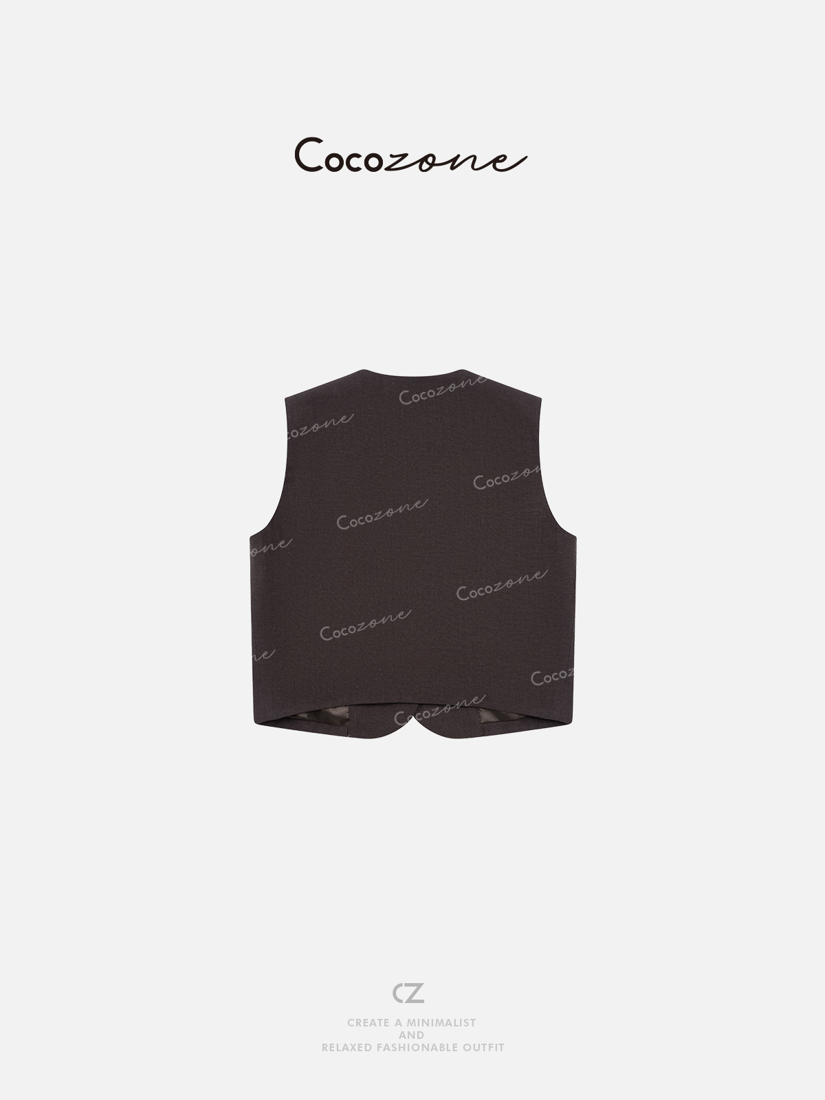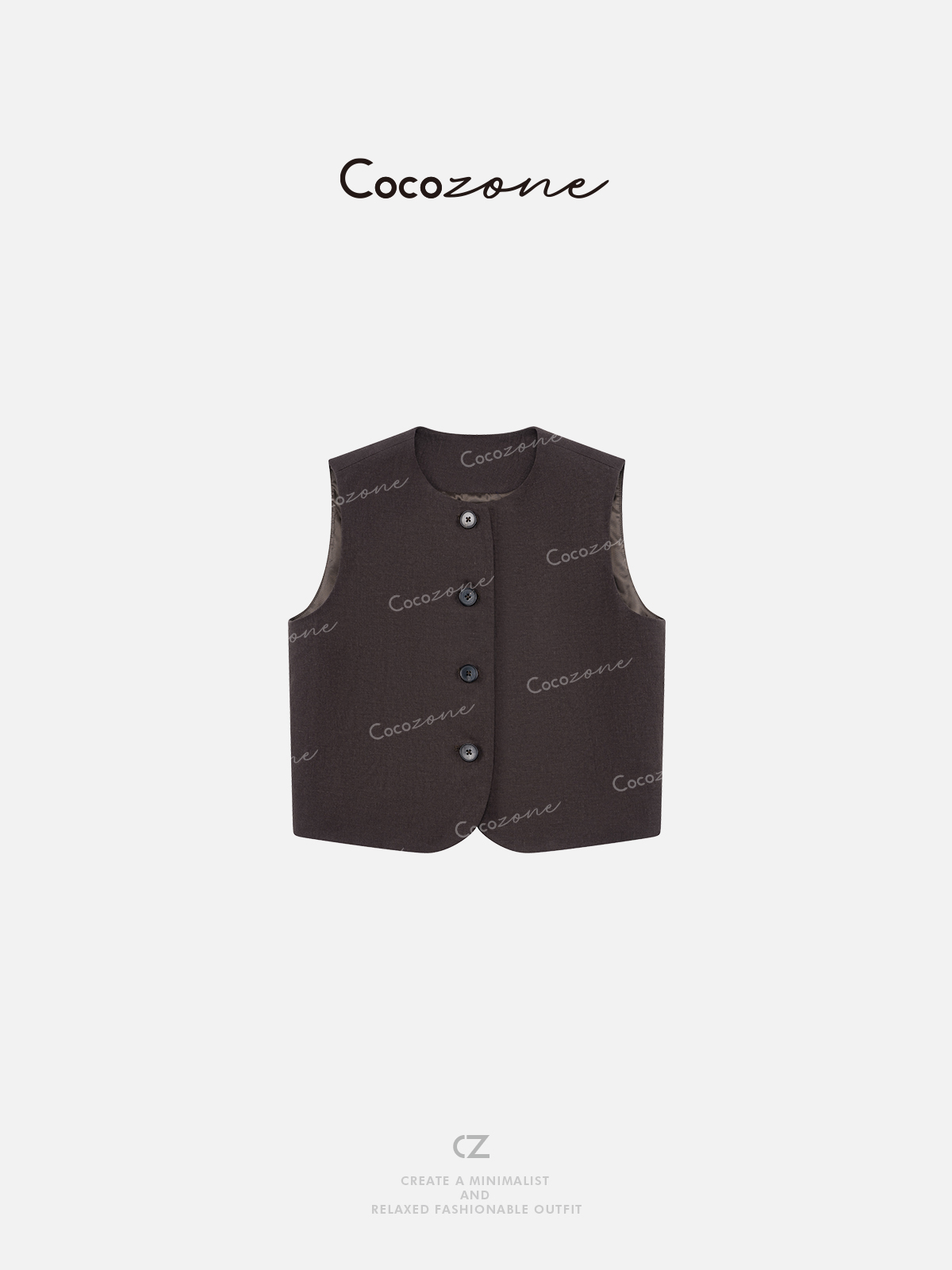 COCO ZONE 刘一一 小众高级感V领单排扣复古圆领马甲CD2A0718