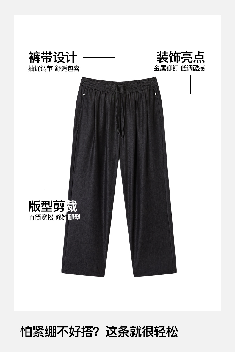 NPC潮牌复古老钱风铆钉字母压褶抖抖休闲长裤男垂感顺滑NP54TR41