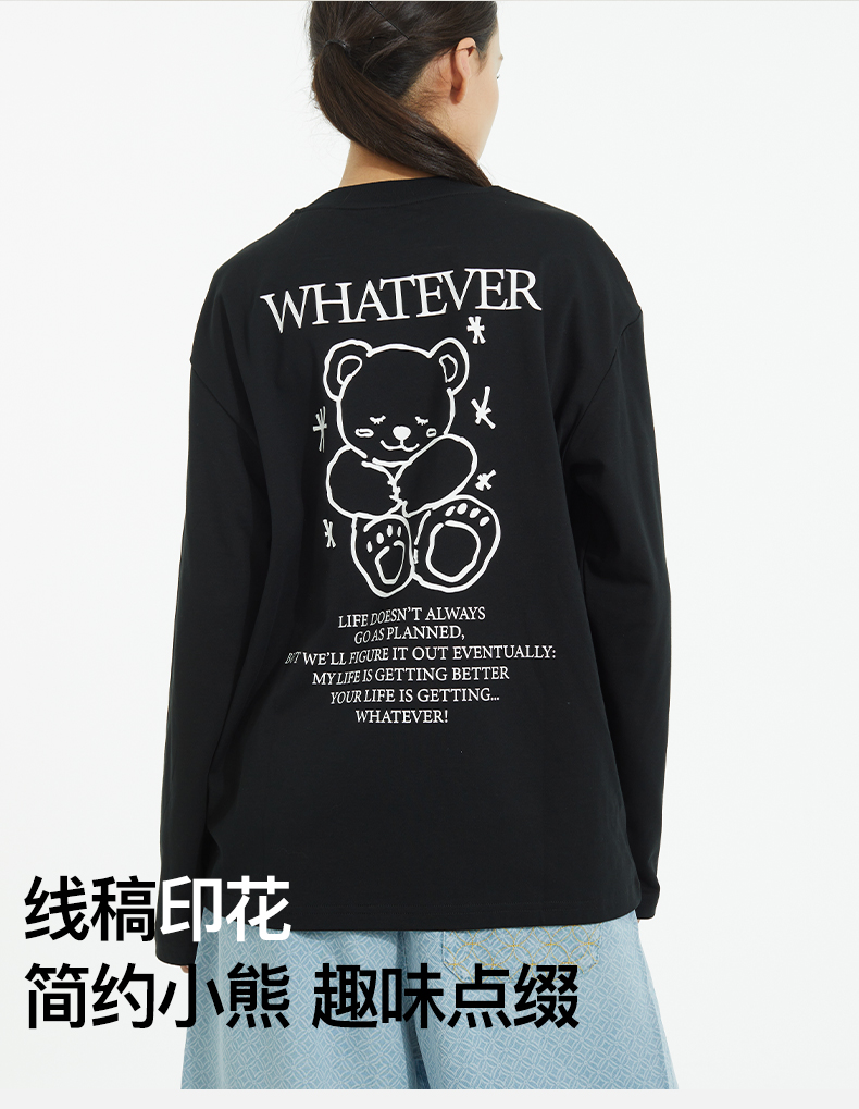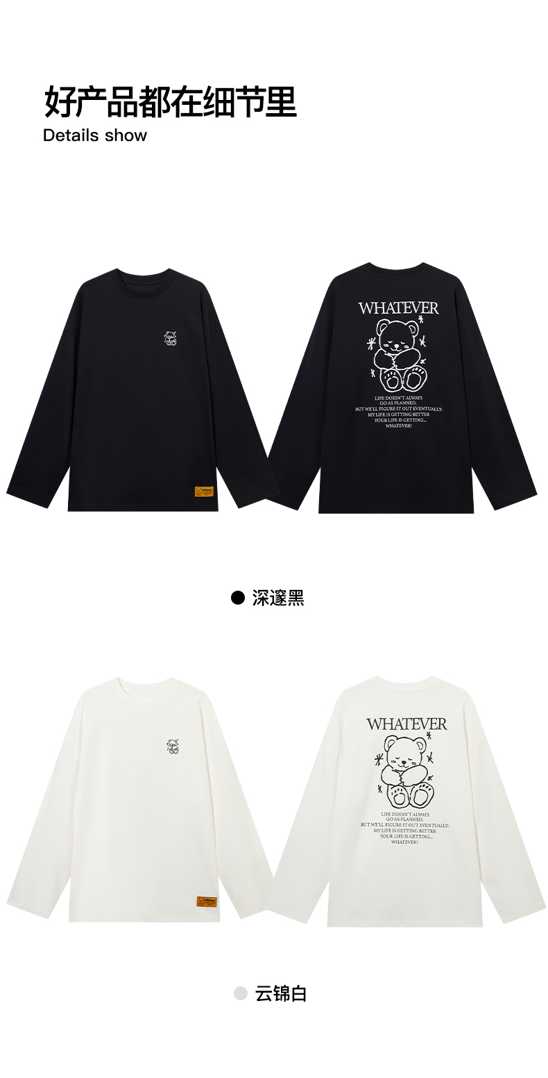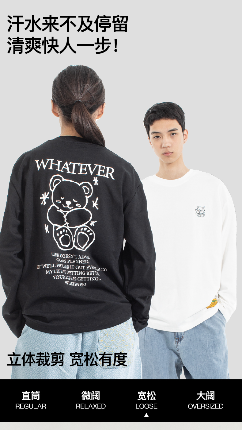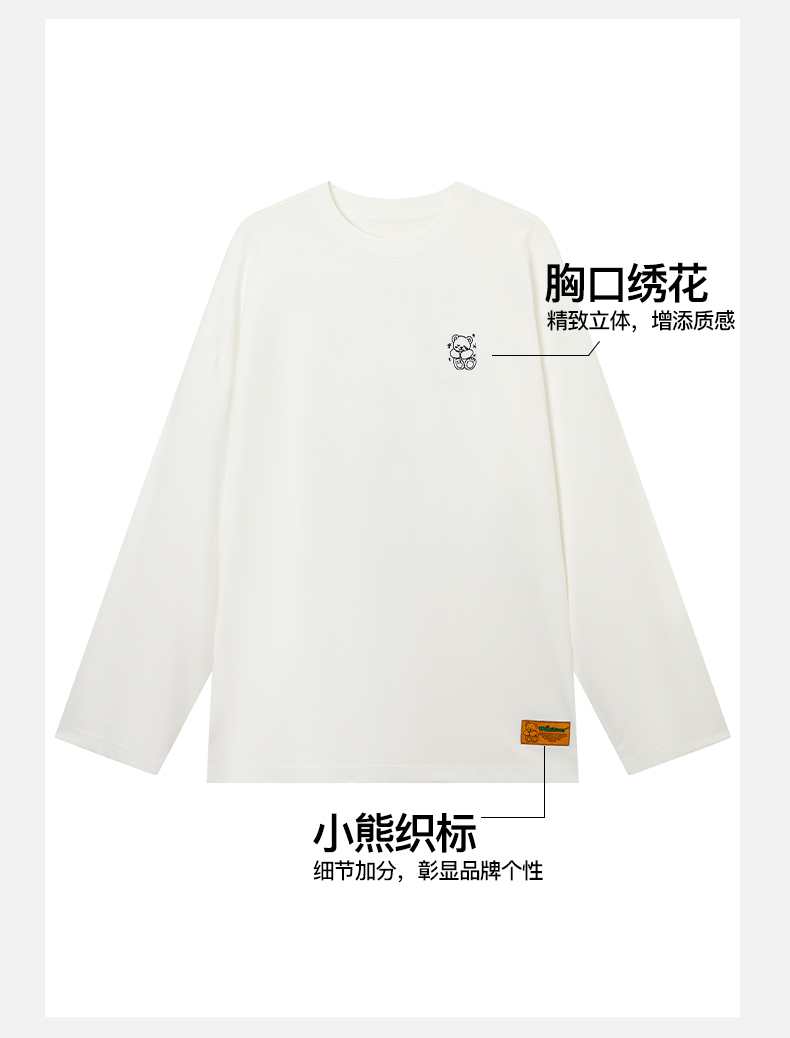 NPC潮牌刺绣&线稿印花【治愈小熊】长袖T恤男速干透气NP52TL05