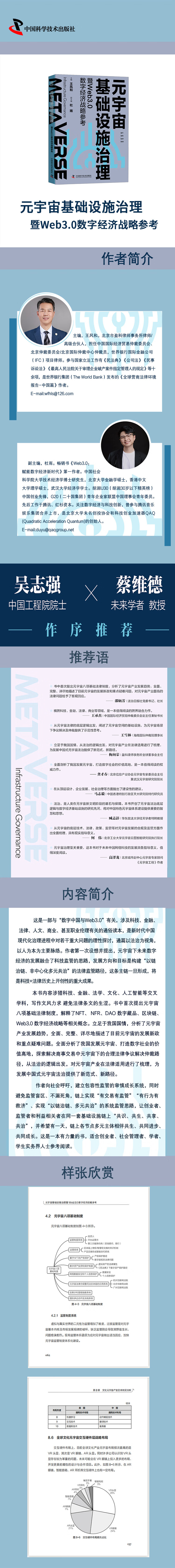 这是一部与“数字中国与Web3.0”有关,涉及科技、金融、法律、人文、商业、甚至职业伦理有关的通俗读本,是新时代中国现代化治理进程中对若干重大问题的理性探讨,通篇以法治为视角,以人为本为主要脉络,作者第一次设想并提出,元宇宙下未来数字经济的发展融合了科技监管的思路,发展方向和目标是构建“以链治链、非中心化多元共治”的法律监管路径,这条主链一旦形成,将是科技+法律历史上开创性的重大成果。
