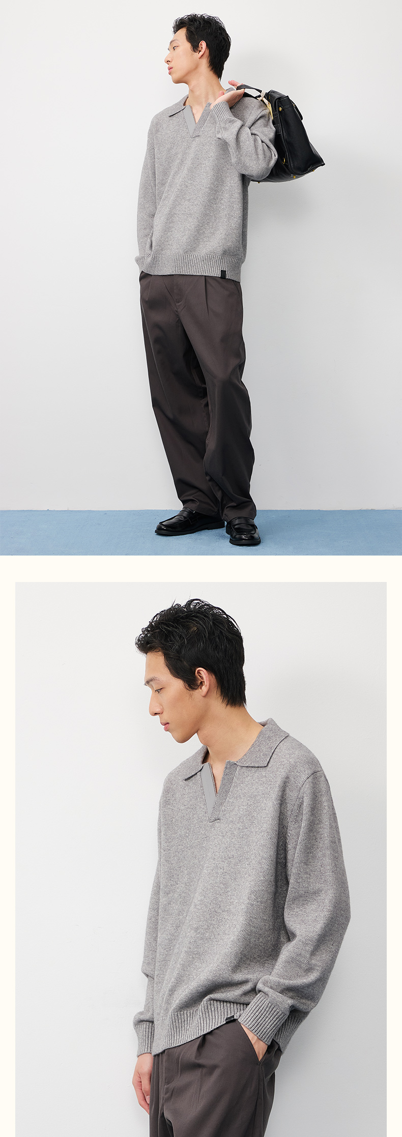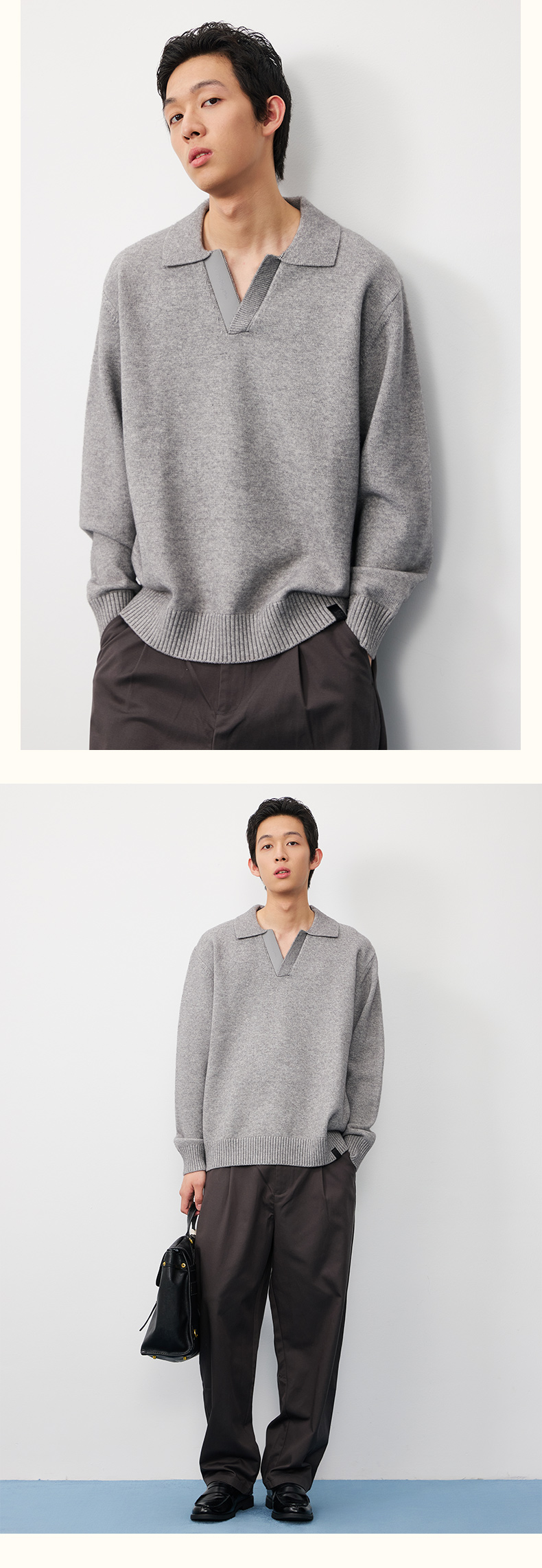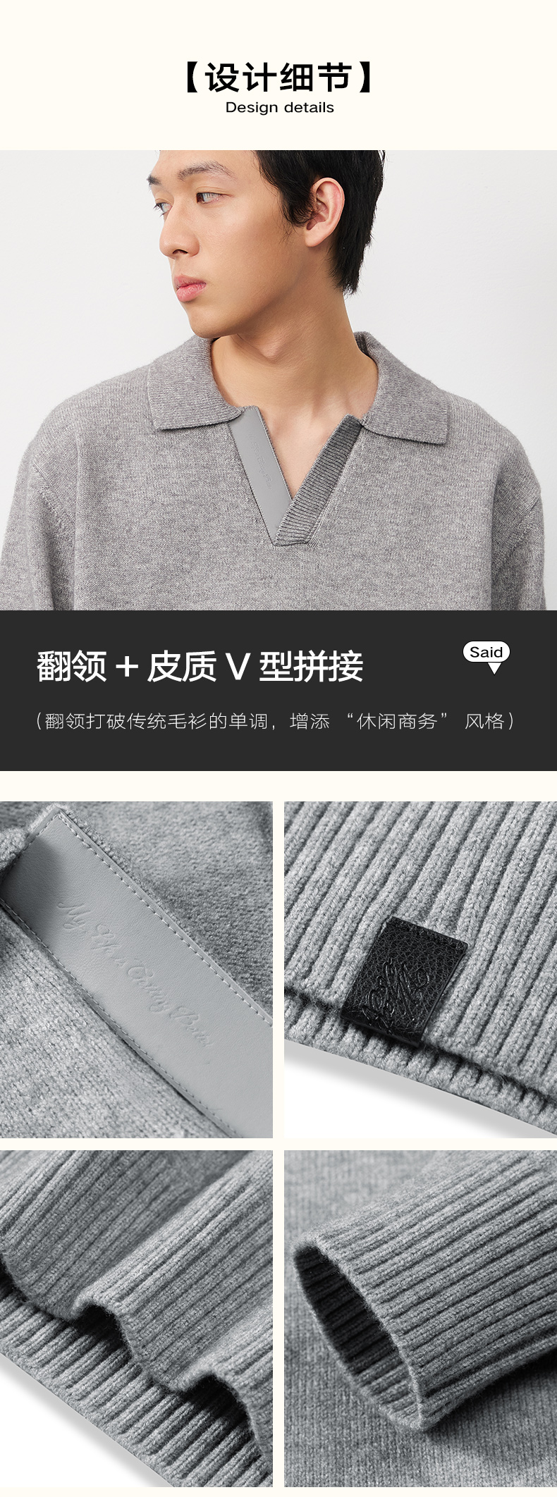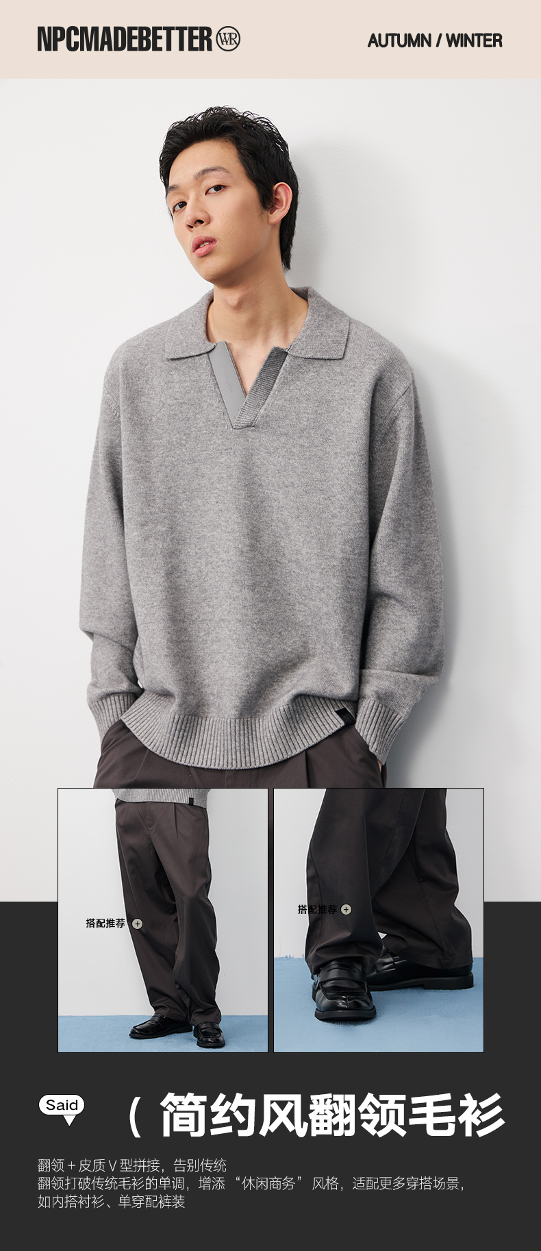 潮牌复古拼接海鸥领休闲针织毛衣男休闲商务潮流NP57SW34
