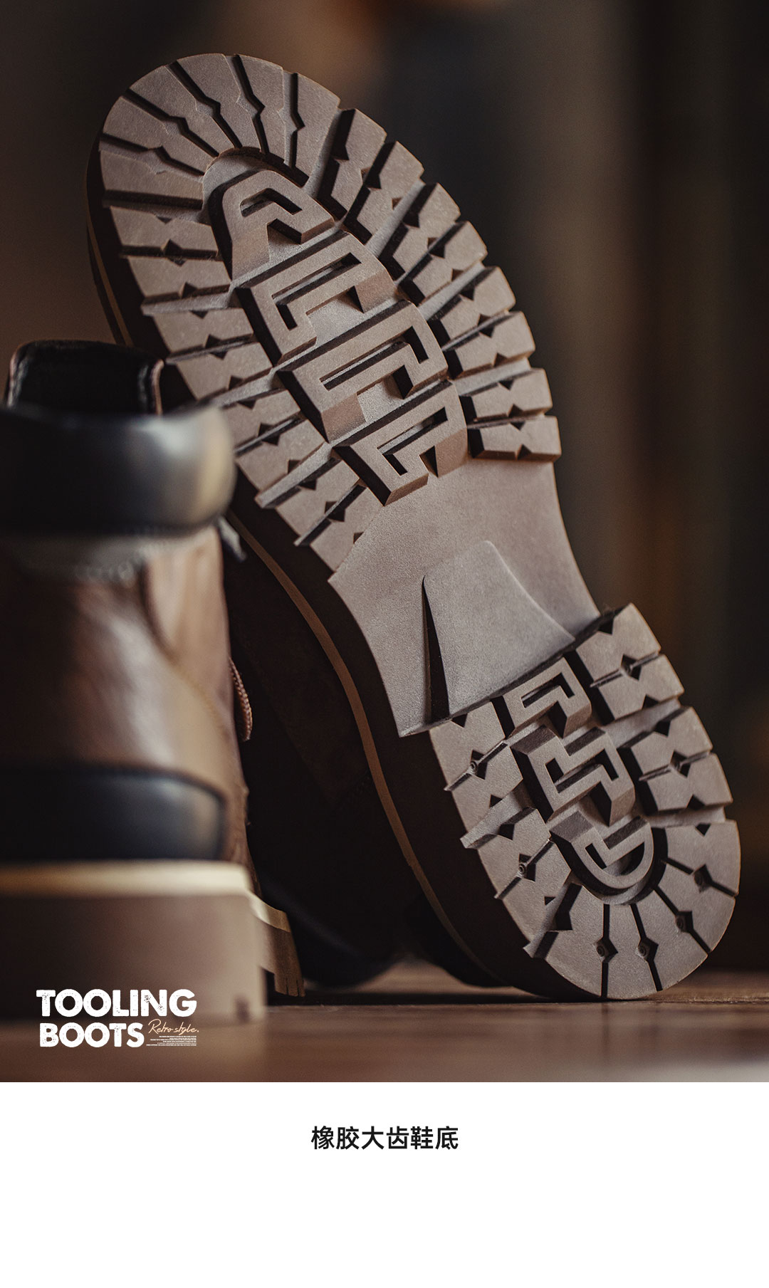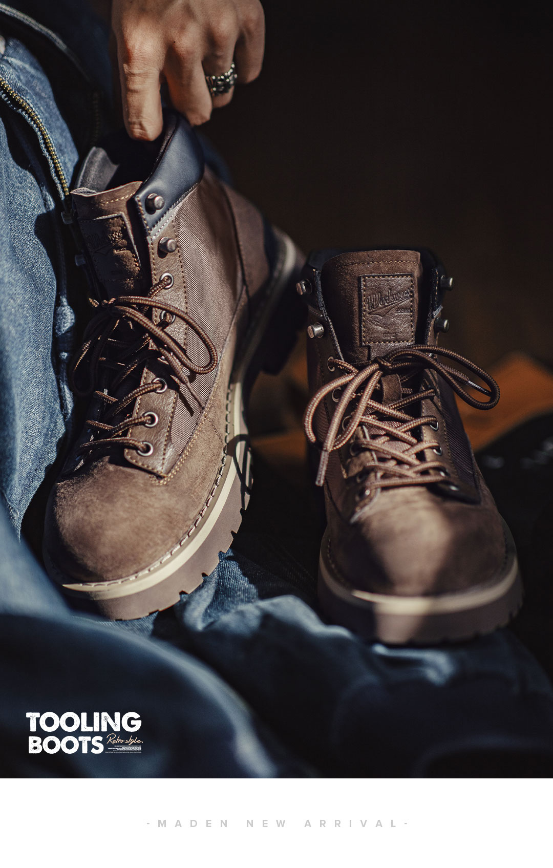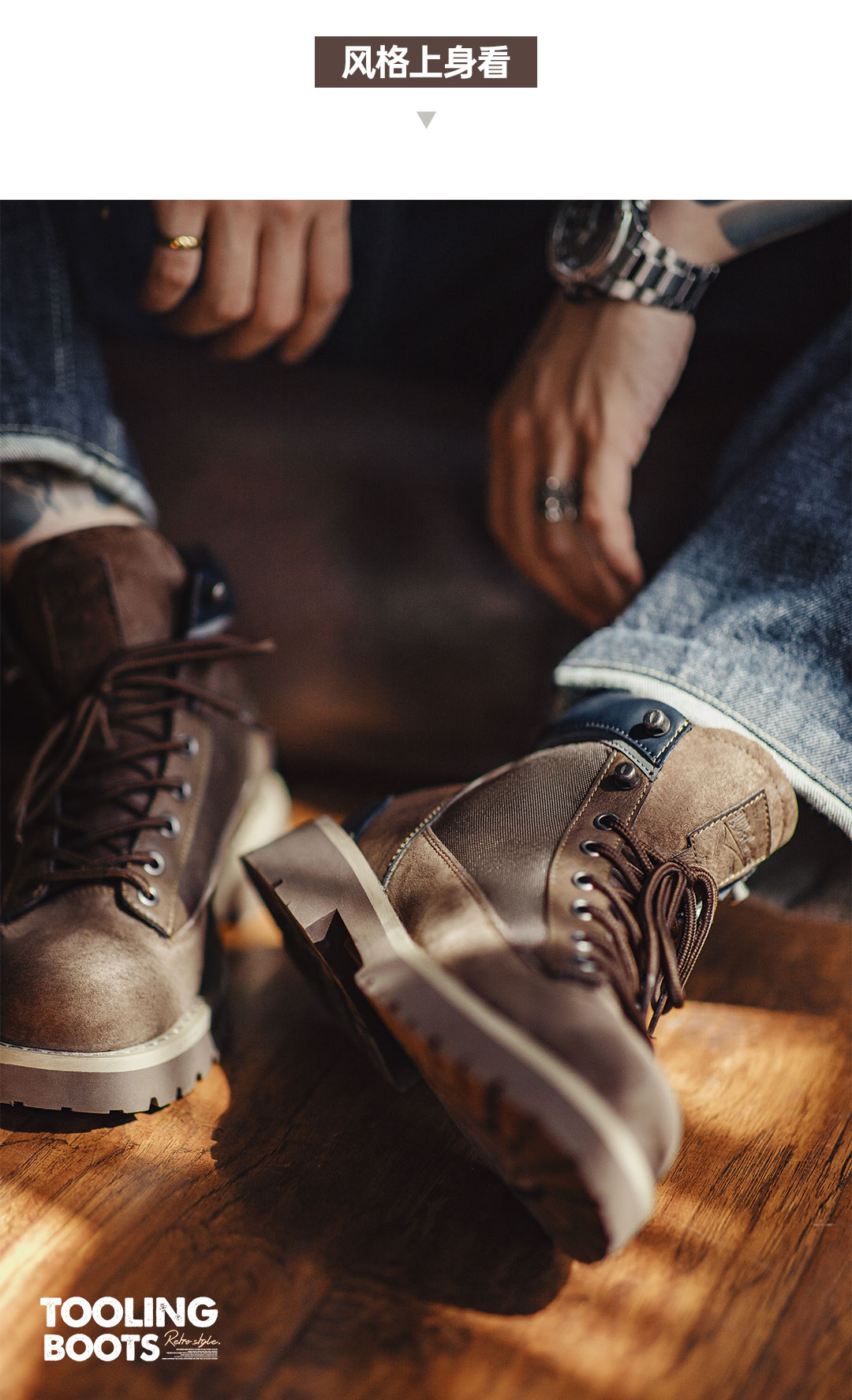 马登哨兵工装靴秋冬季男士休闲鞋美式复古中帮真皮登山厚底马丁靴