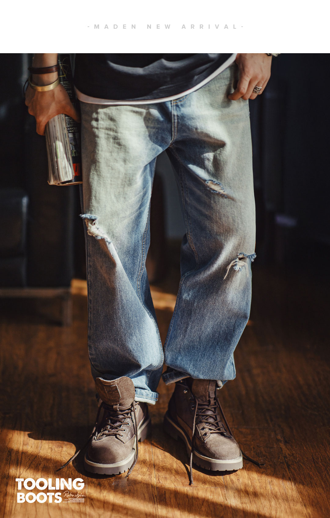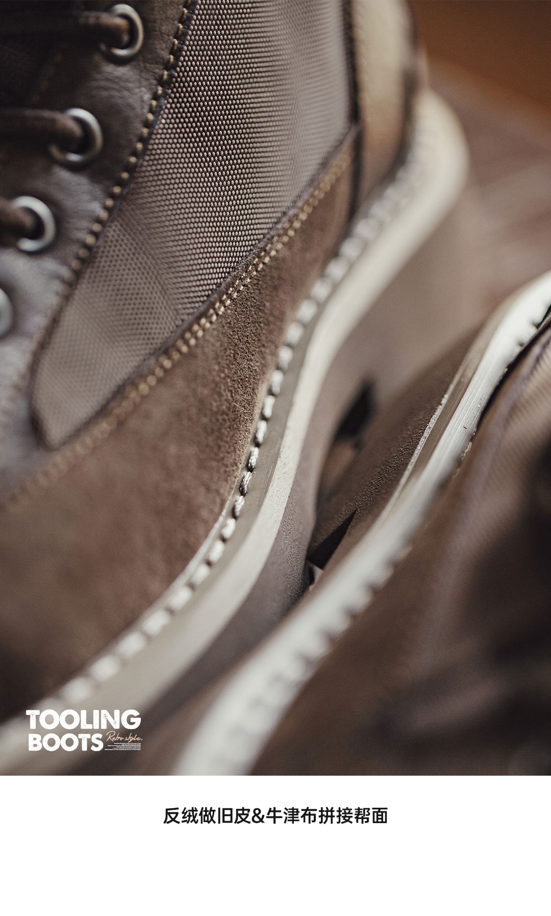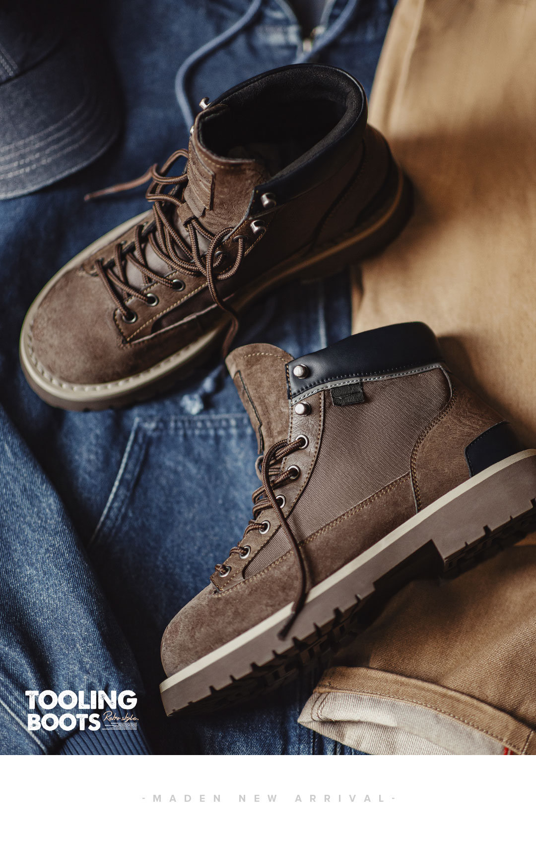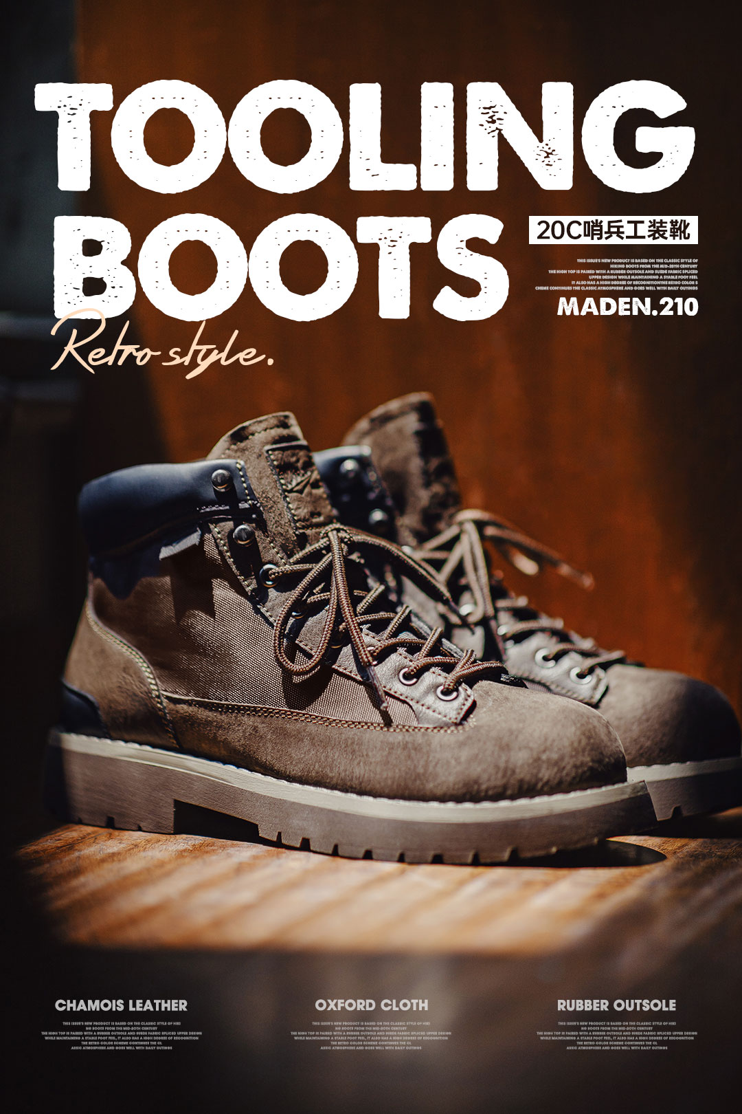 马登哨兵工装靴秋冬季男士休闲鞋美式复古中帮真皮登山厚底马丁靴