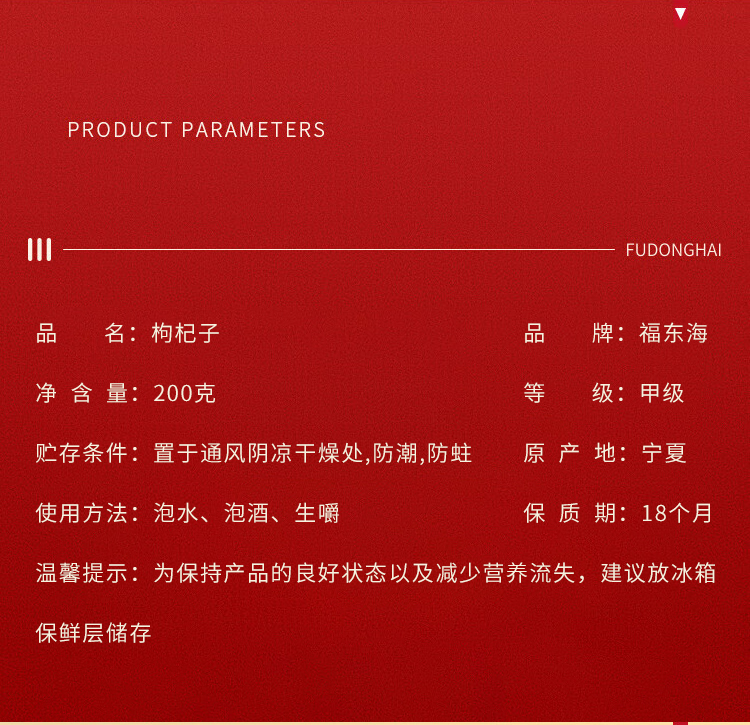 福东海 红枸杞子200克【实体品质】新货宁夏免洗苟杞子茶送礼滋补佳品