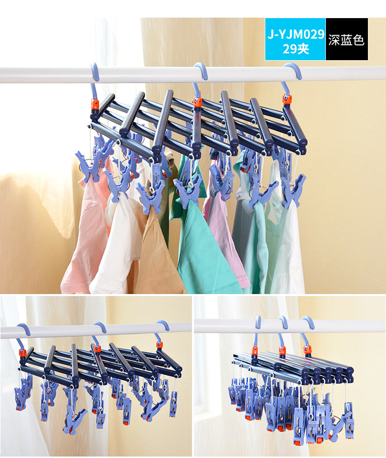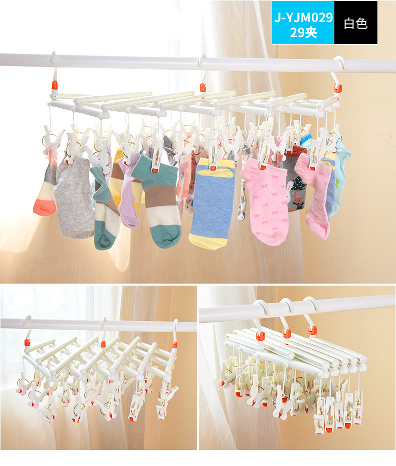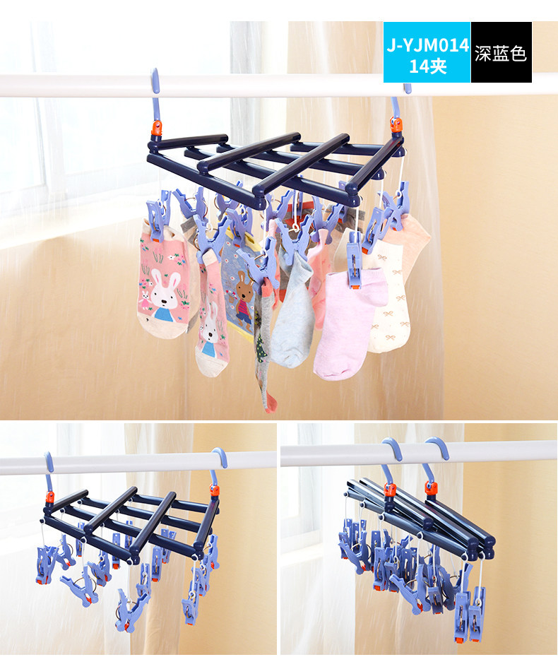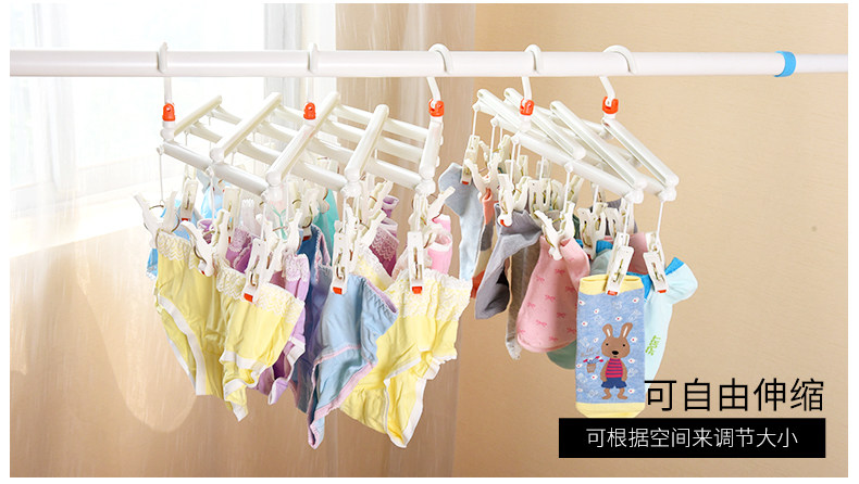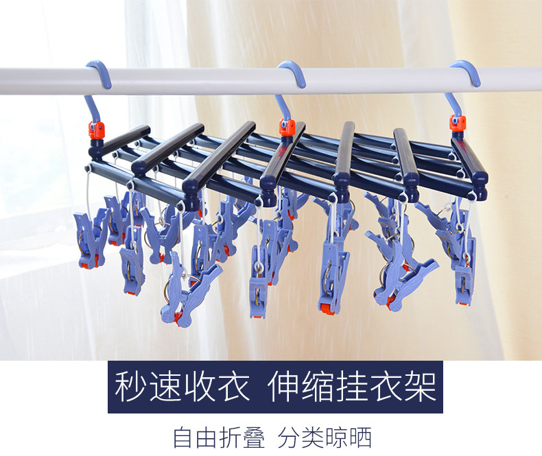 晾袜子衣架多夹子 多功能折叠伸缩衣架 内衣家用多头夹秒收晾衣夹【D】