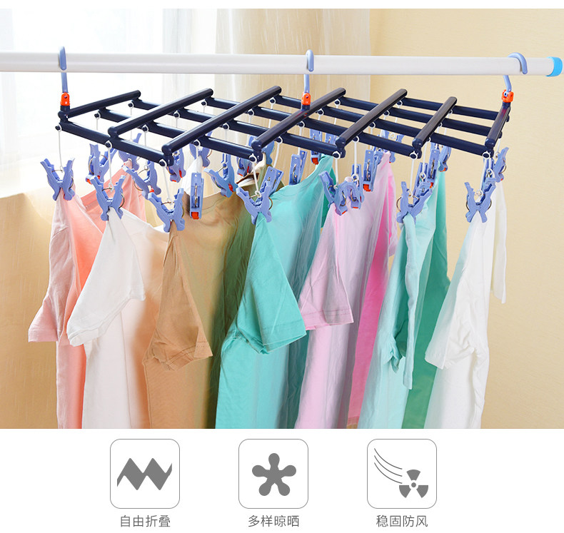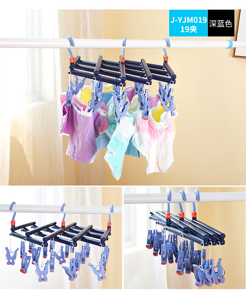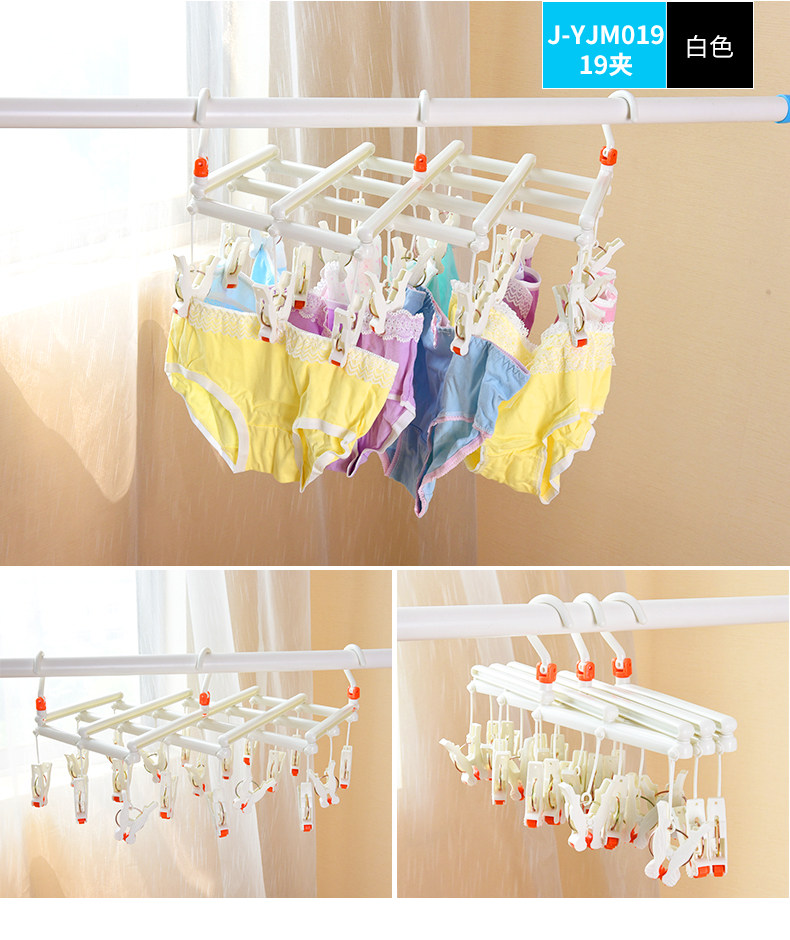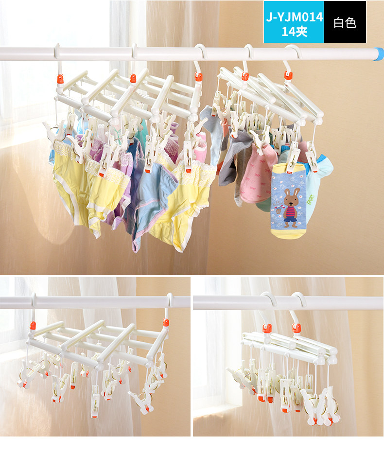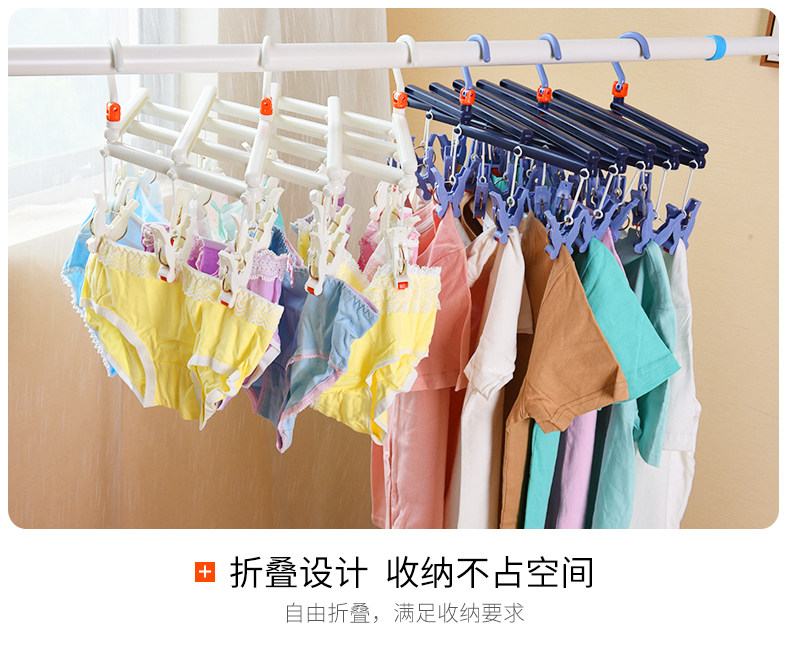 晾袜子衣架多夹子 多功能折叠伸缩衣架 内衣家用多头夹秒收晾衣夹【D】