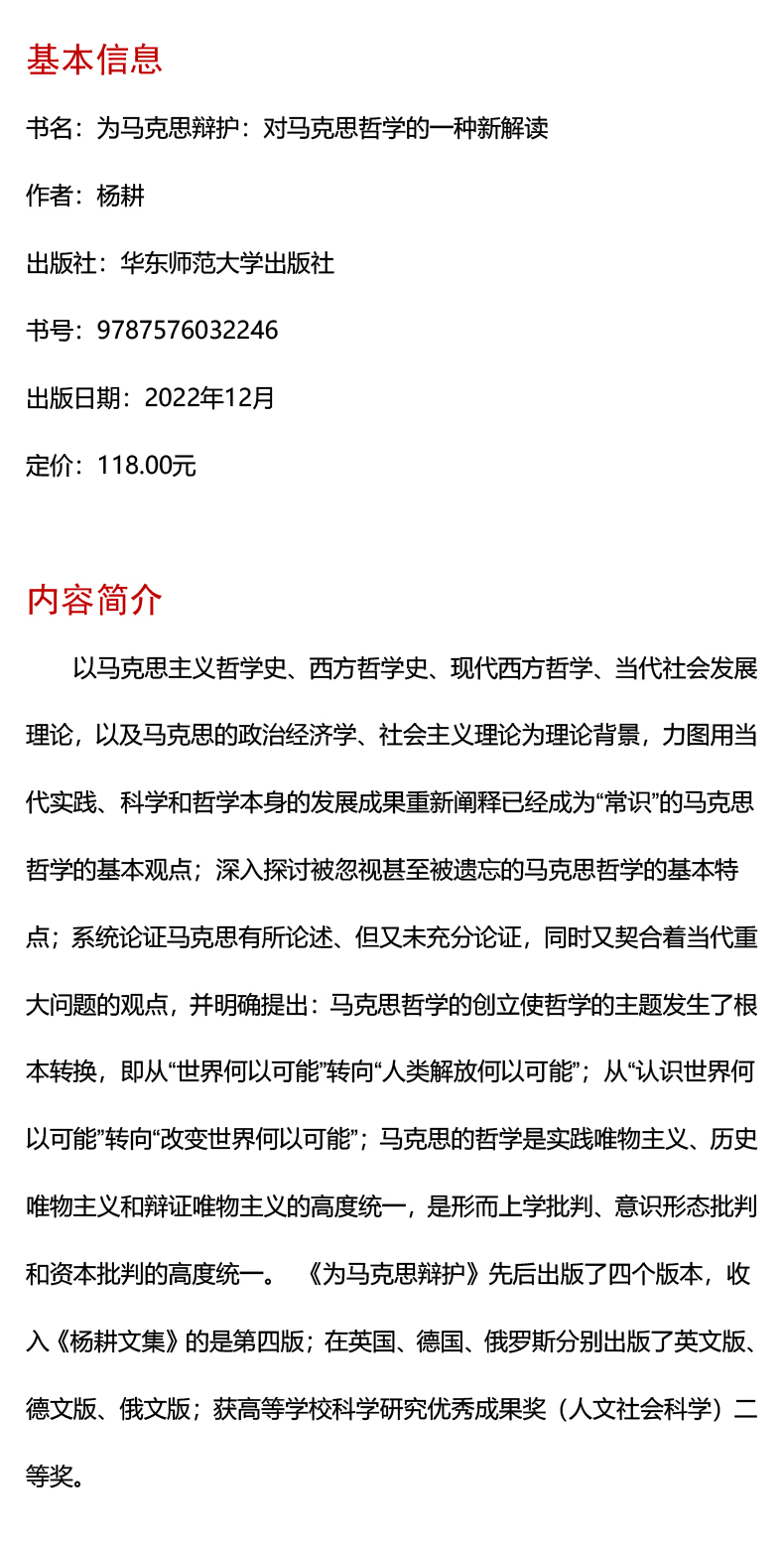 为马克思辩护 对马克思哲学的一种新解读 杨耕文集 第1卷