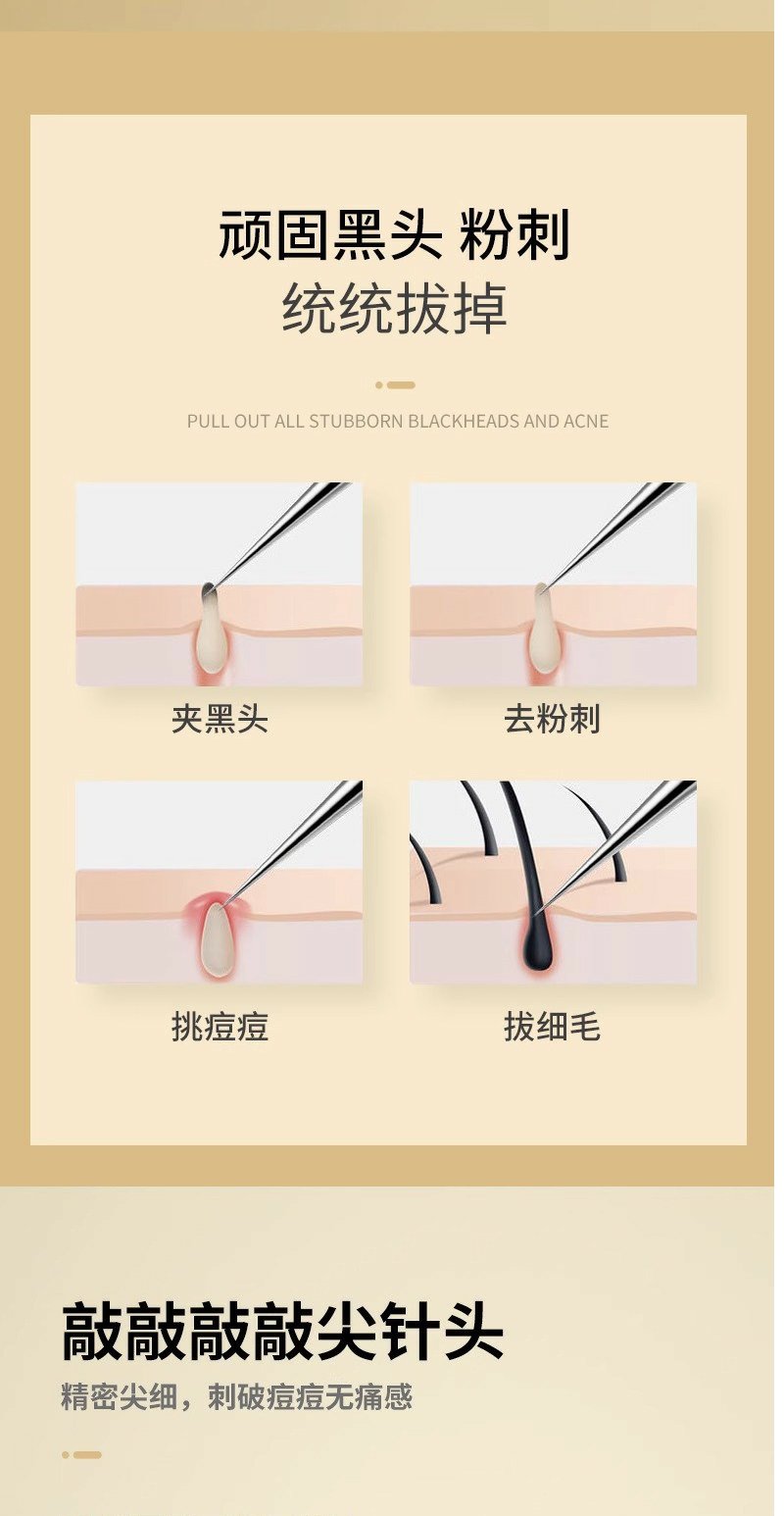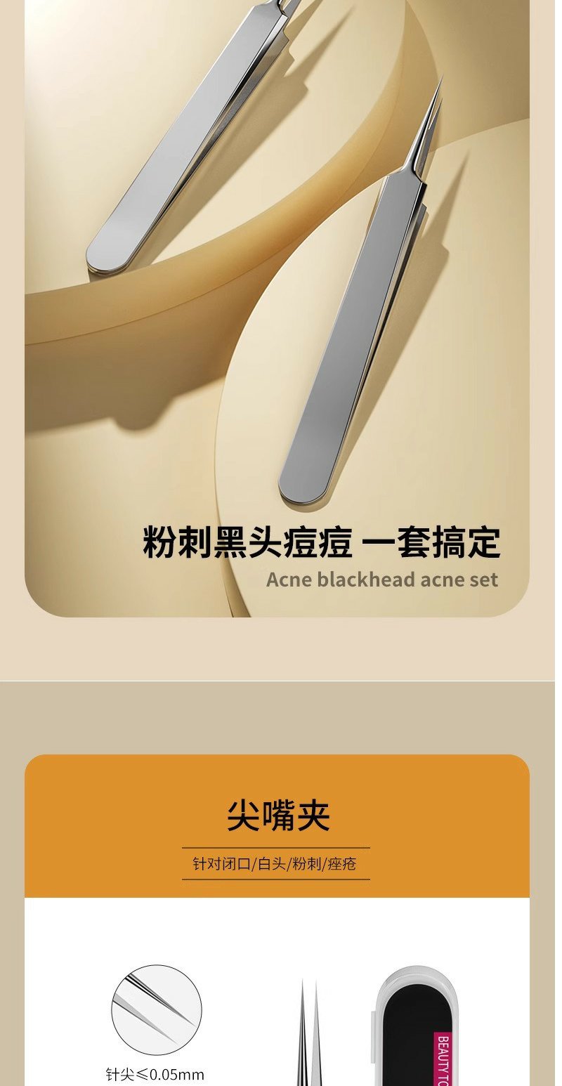 不锈钢粉刺夹细胞夹痘痘针黑头针祛痘美妆工具粉刺针套装