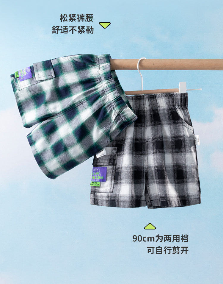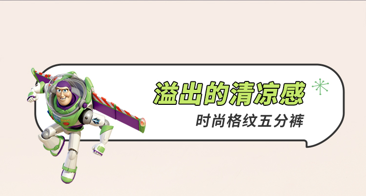 【商场同款】迪士尼童装男童纯棉五分裤清爽夏季新品巴斯光年中大童格子短裤