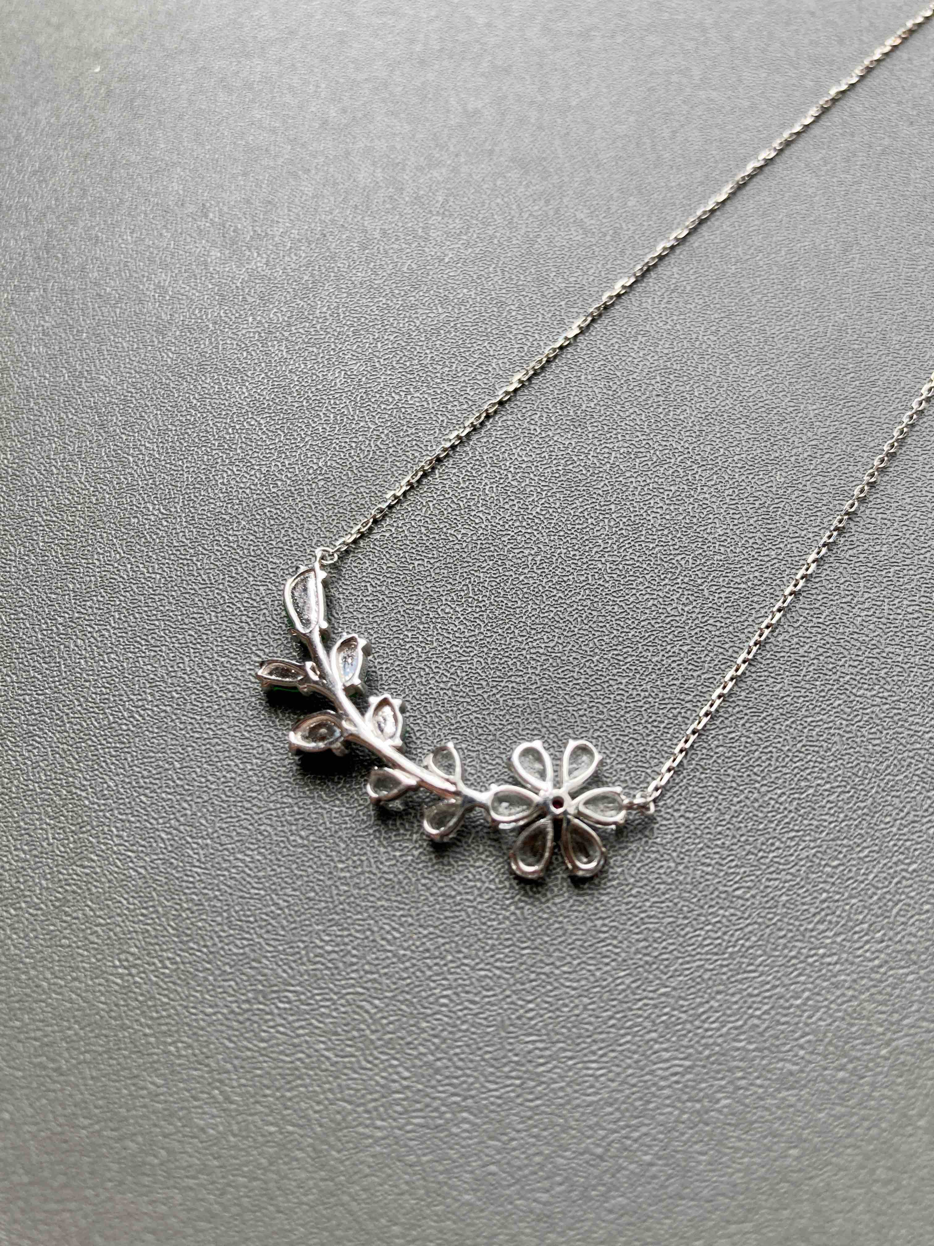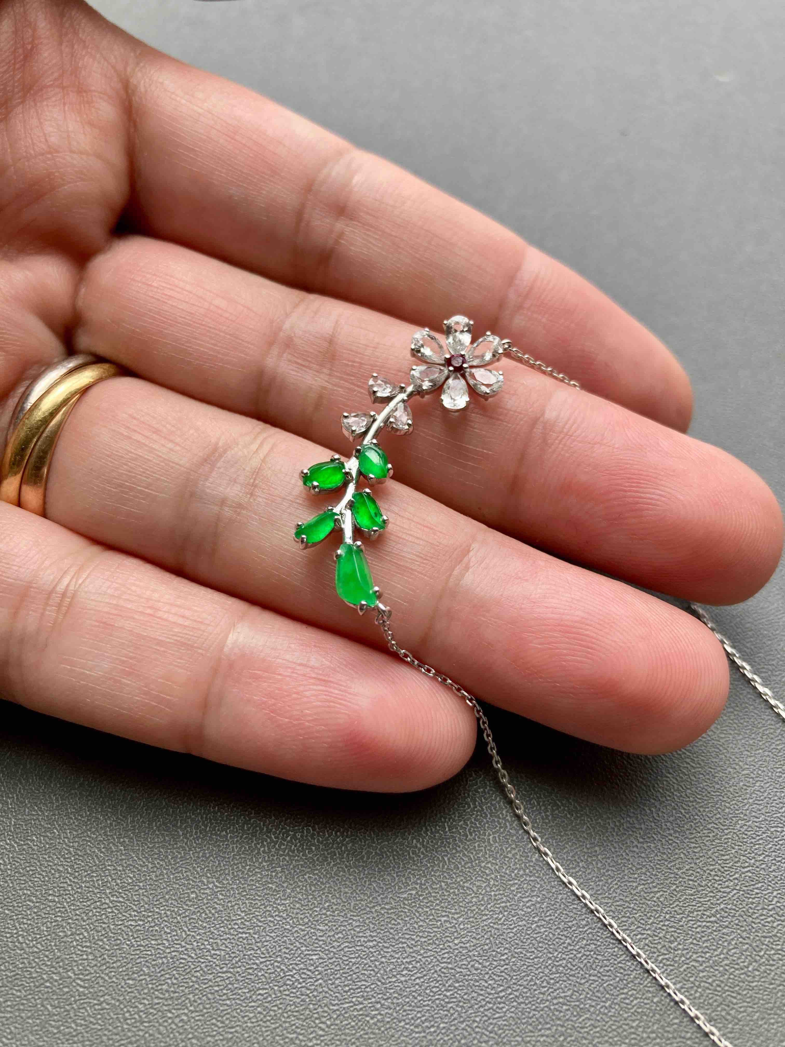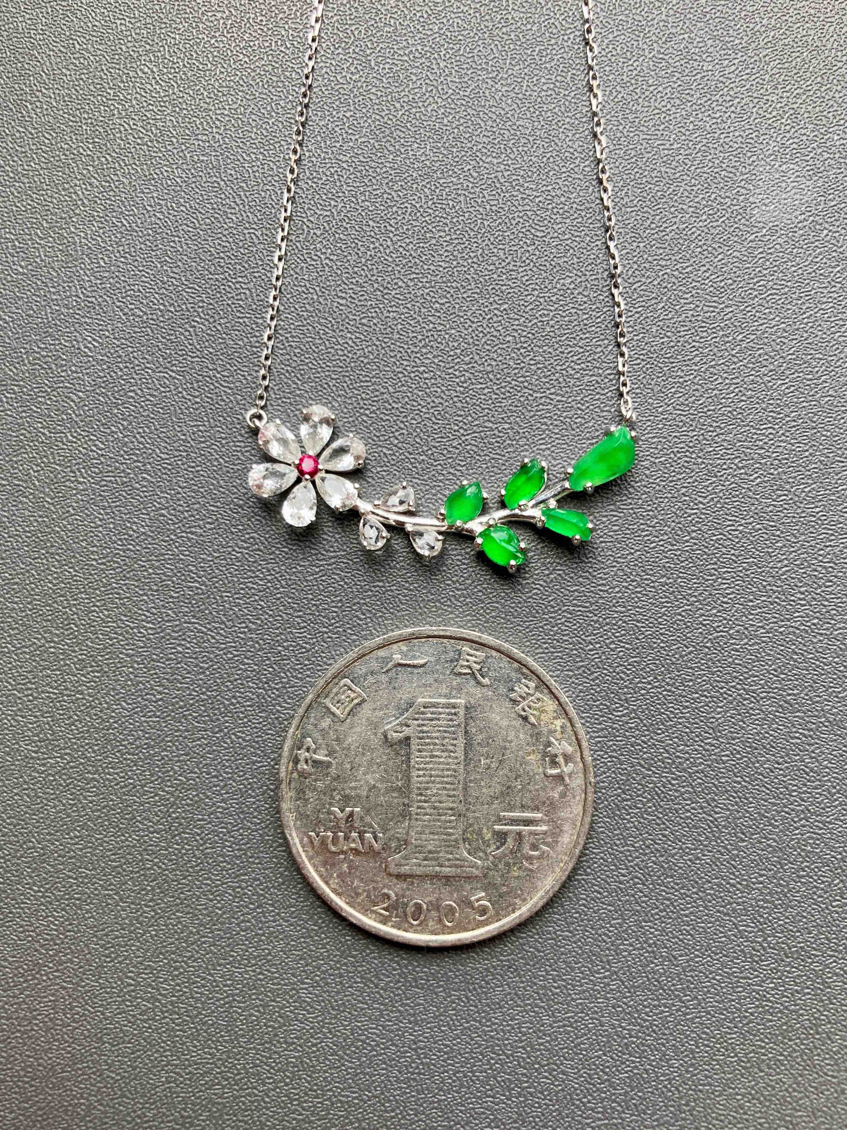 高冰种阳绿翡翠小花锁骨链18k白金镶嵌