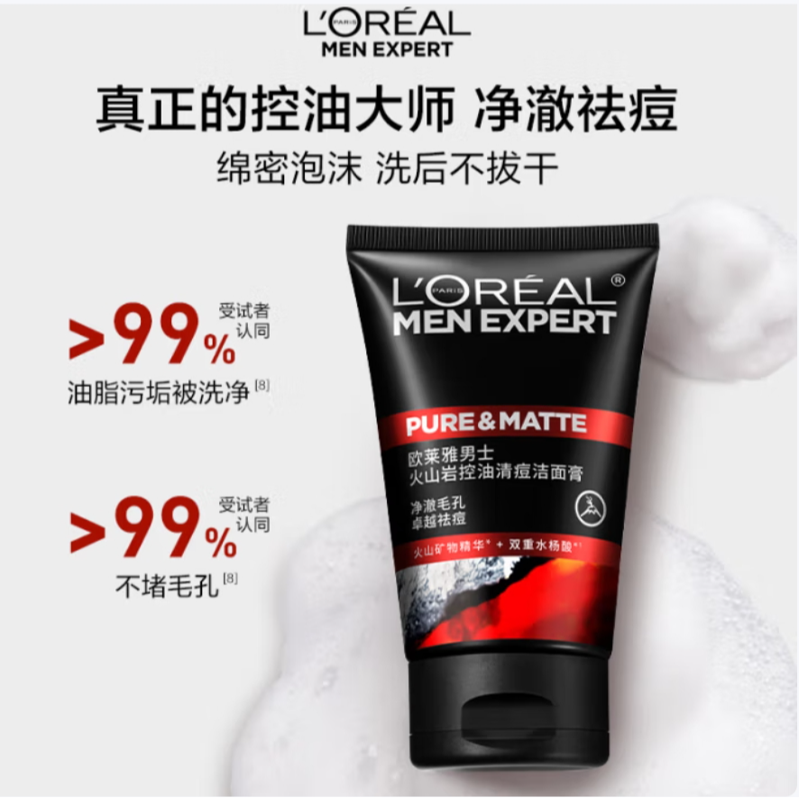 欧莱雅男士火山岩控油清痘洁面膏100ml