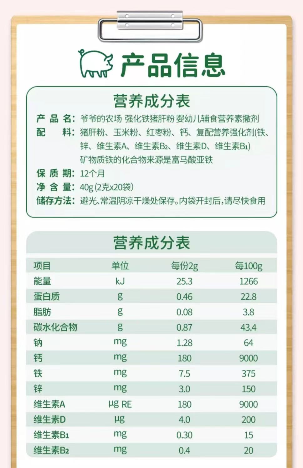 爷爷的农场(Grandpa's Farm)强化铁猪肝粉 40g 适合6-12个月