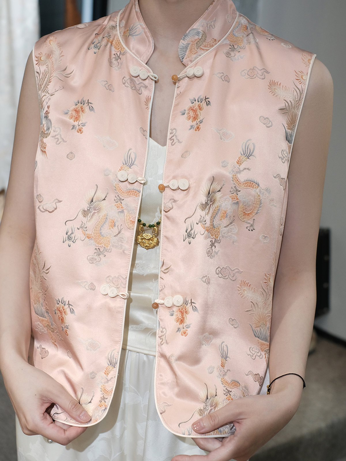 盛唐婧 |凤凰牡丹祥云葫芦盘扣马甲