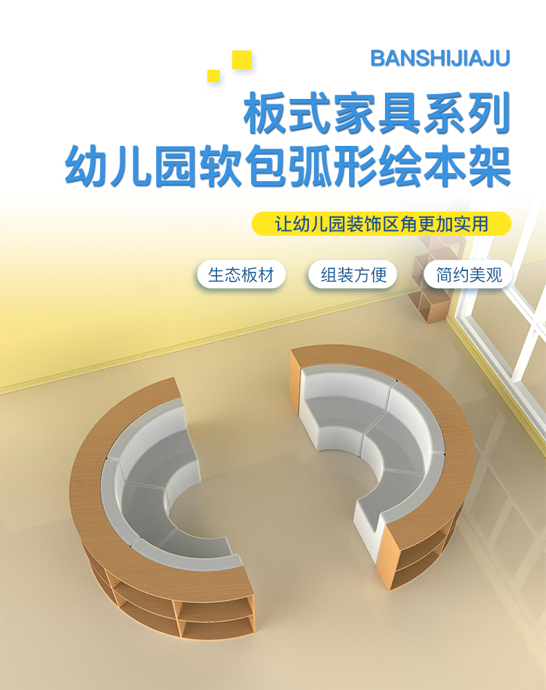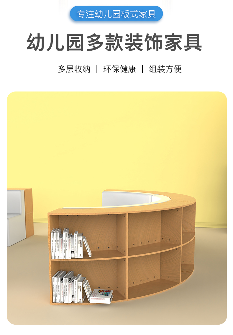 两层软包半圆绘本架幼儿园绘本馆阅读区儿童半圆毛毛虫中岛绘本架