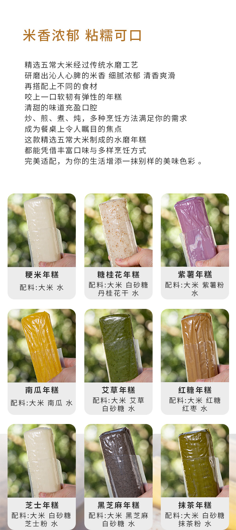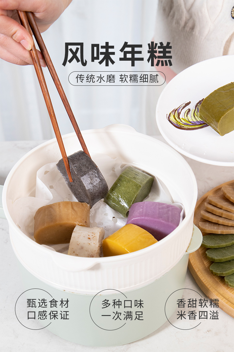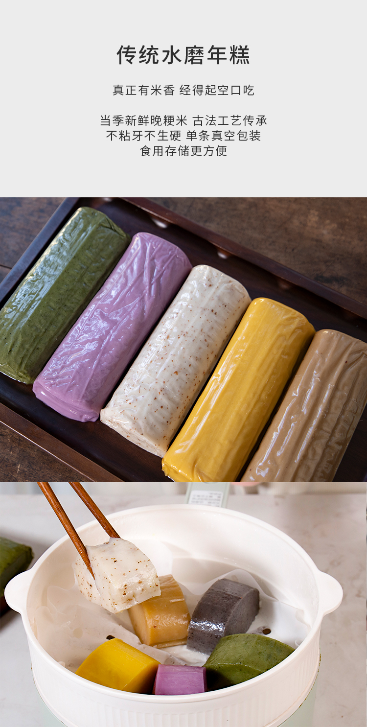 【甄选】风味七彩年糕 传统水磨 五谷果蔬粗粮年糕 火锅炒菜 真空包装 米香浓郁 口感Q弹 糯叽叽 0添加