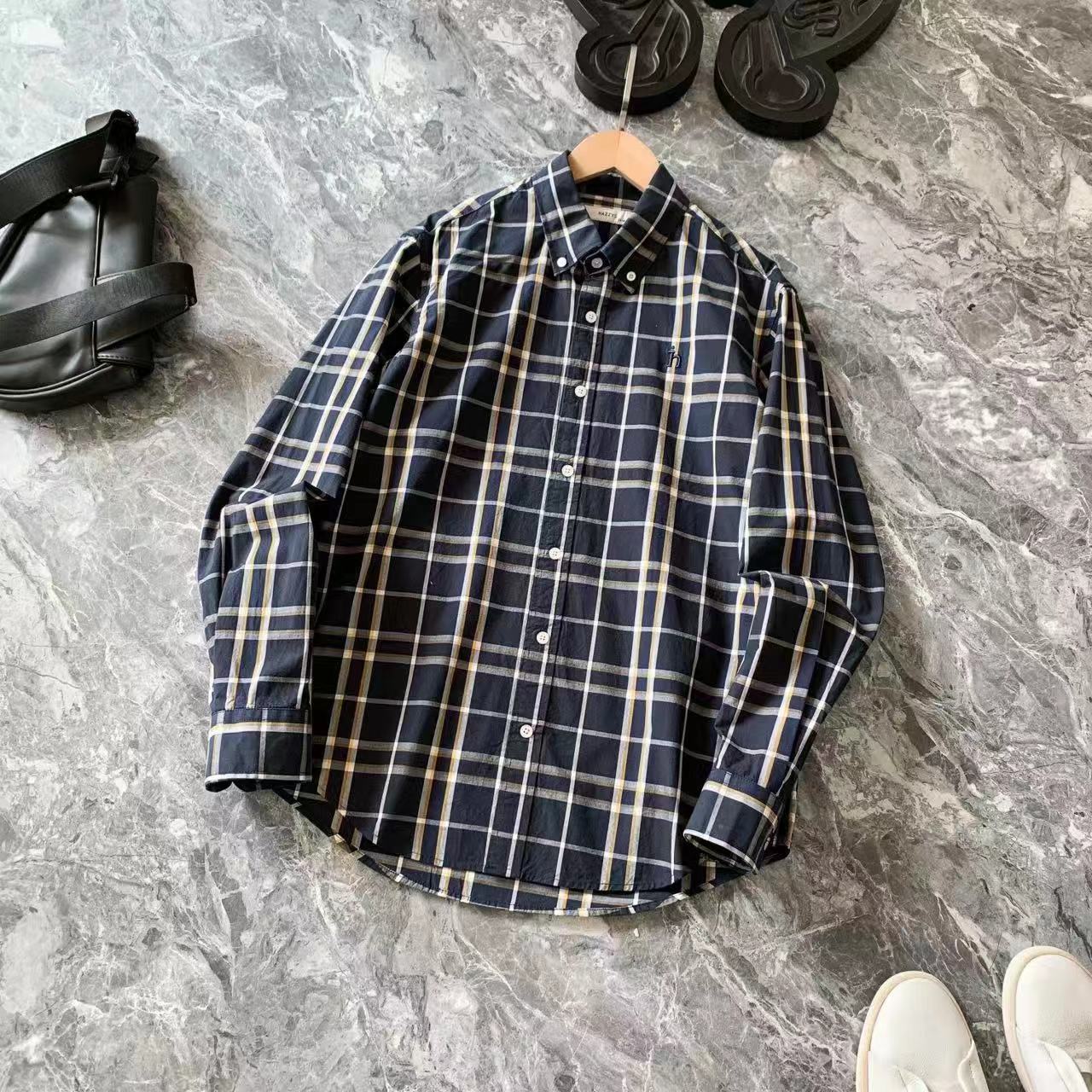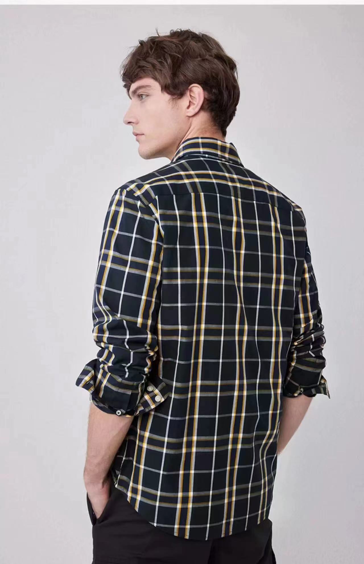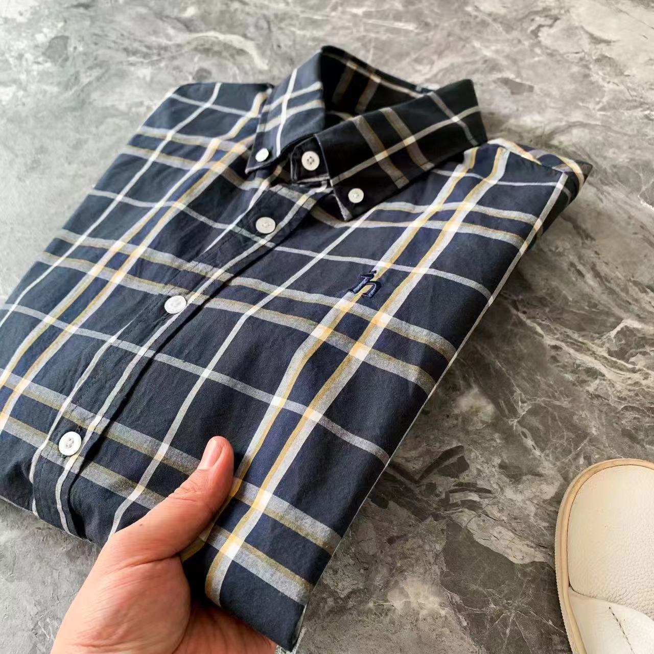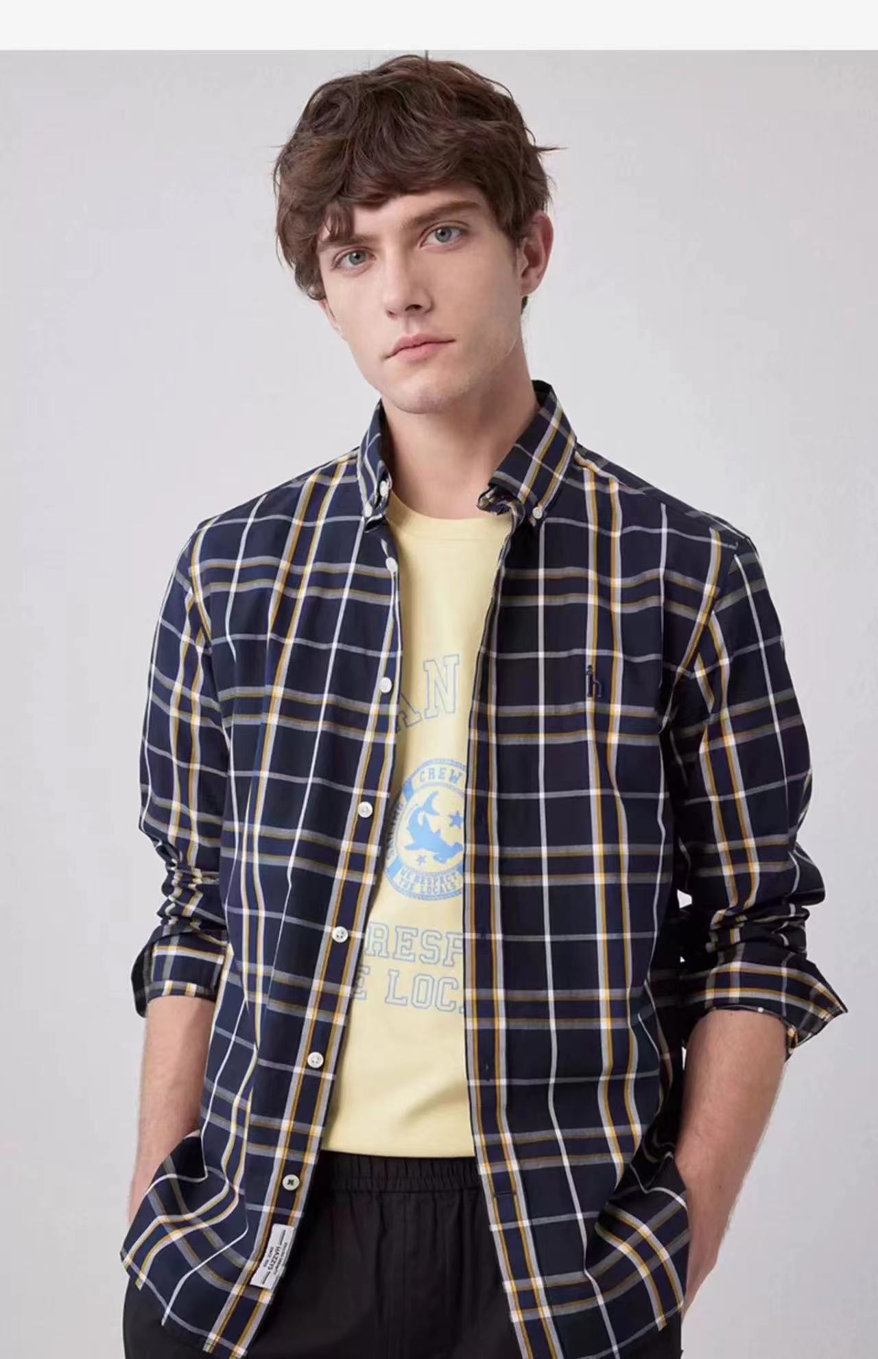 男装春季新款新品时尚jing典撞色格纹纯棉衬衫外套步对位全棉磨毛面料,亲肤舒适,手感无敌!三标辅料齐全,扣子全部激光定位logo,洗标处配有备用扣~整体流畅简洁大气的设计,复古之中又带着十足的时髦感!是秋冬衣柜里不能缺少的款式~