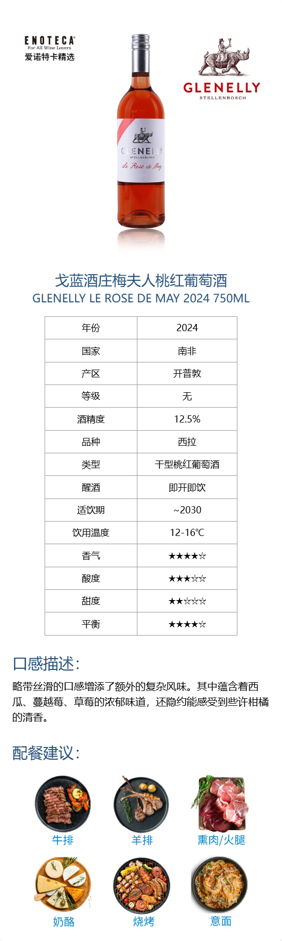 【南非优雅西拉桃红】Glenelly Le Rose De May 2024 750Ml