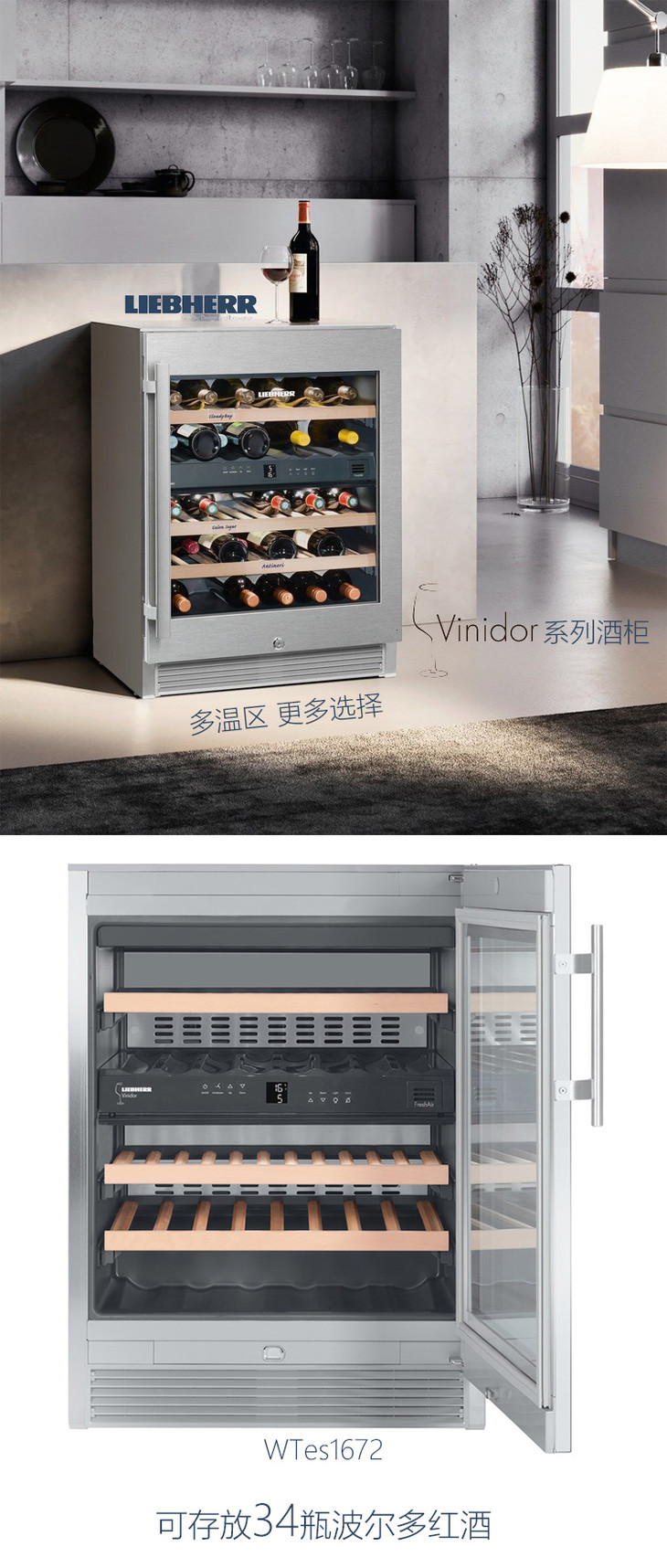 LIEBHERR利勃海尔 123升 Vinidor双温区独立式葡萄酒藏酒柜 WTes1672(8折)