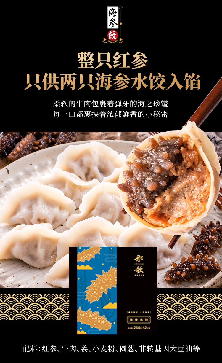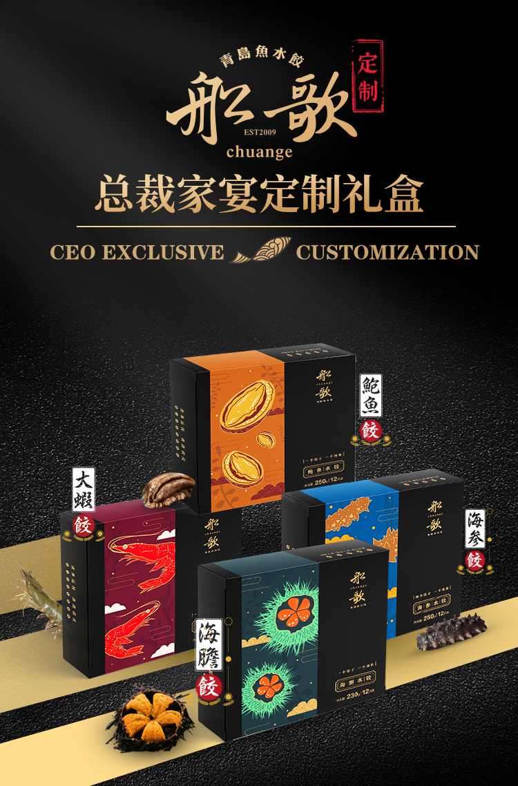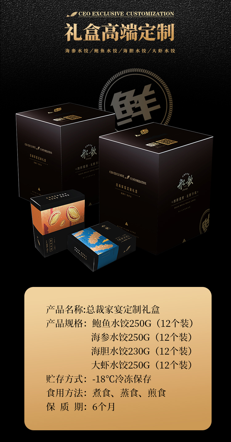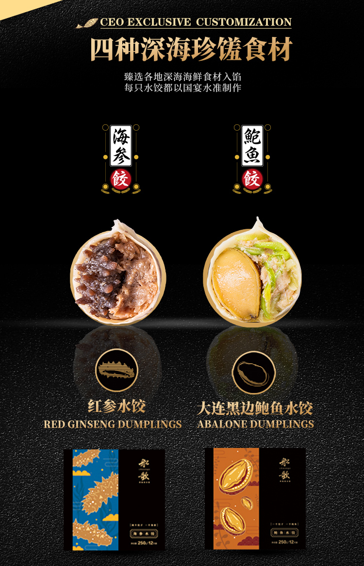 【水饺礼盒•高端定制】#顺丰包邮 总裁家宴定制 海参饺子 鲍鱼饺子 海胆饺子 大虾饺子