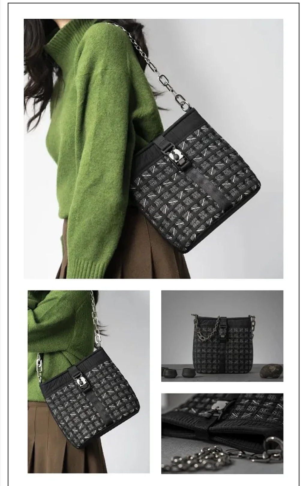 【梭说】时光系列包袋 手工侗锦水波纹 电脑公文包 手提包 链条包 轻便耐用