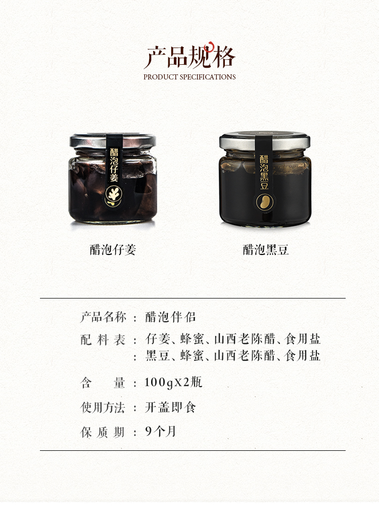 【美和居-始于1368】醋泡伴侣即食醋泡姜醋泡黑豆绿心100gx2瓶