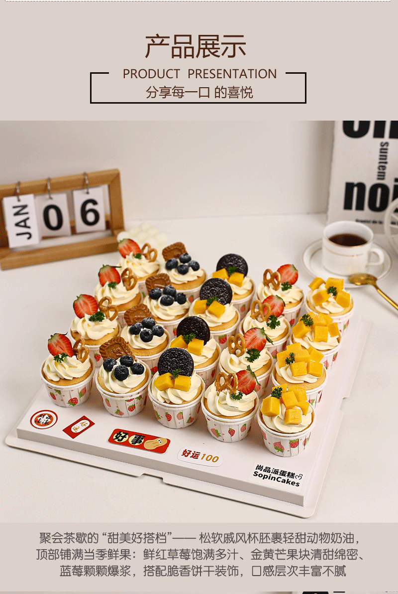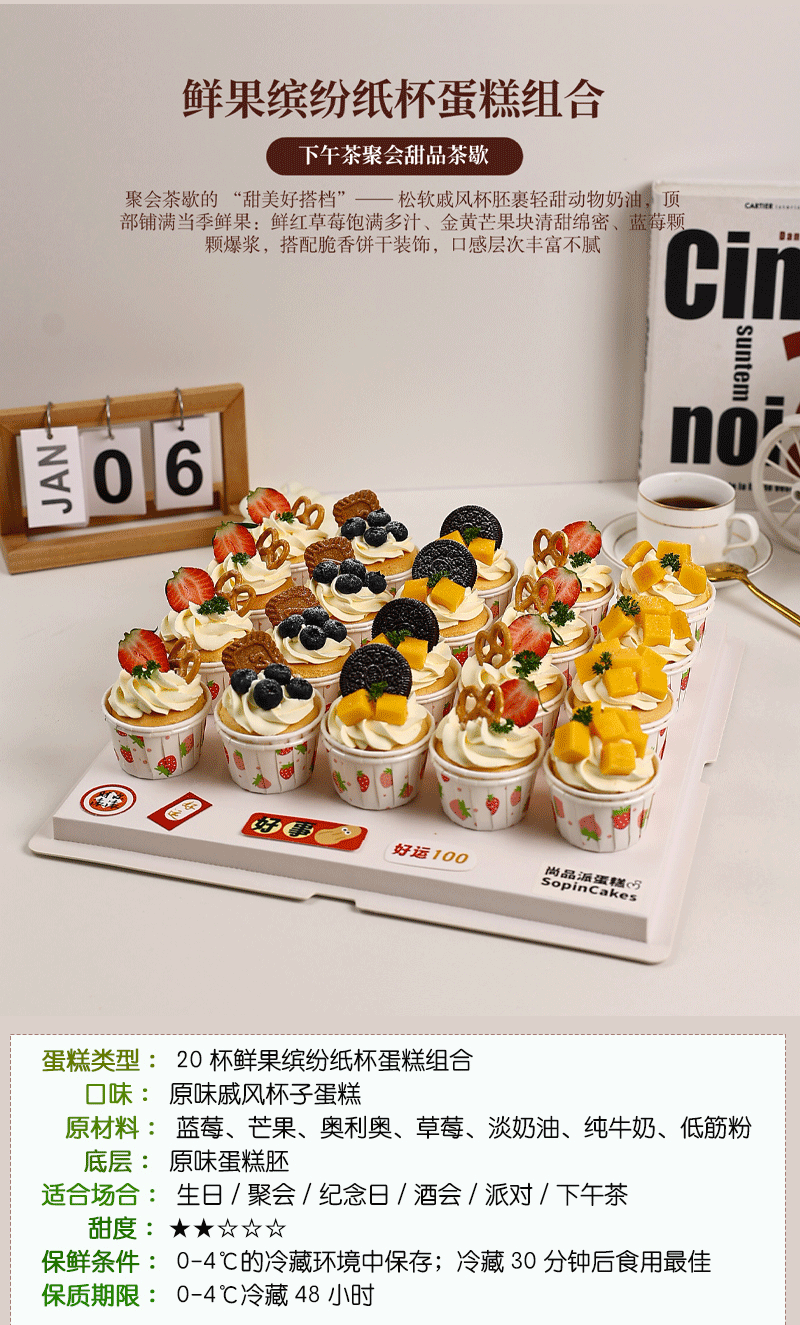 「20杯鲜果缤纷纸杯蛋糕组合」聚会茶歇的 “甜美好搭档”~【惠州】